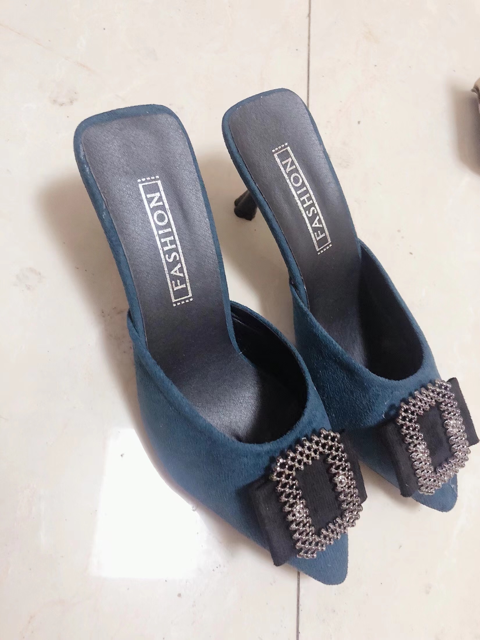Niulatu Baotou Half Slipper Shoes Women Stiletto High Heels Korean All-match Pumps Square Rhinestone Pointed Mules Shoes DJSE