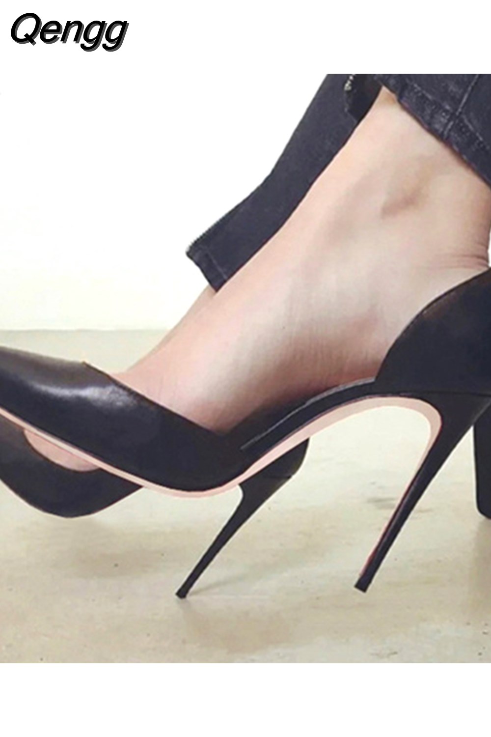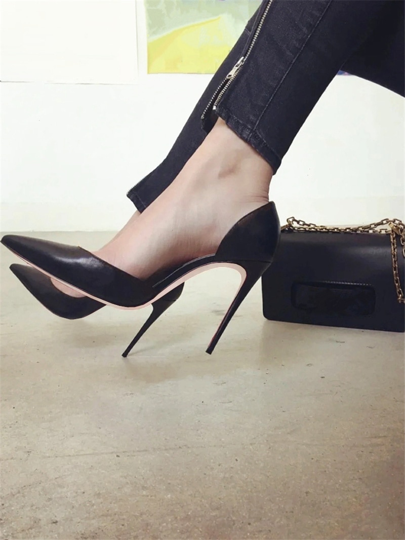 Niulatu Black 12cm High Heels Shoes Woman Pumps Side Empty Pointed Toe Stilettos Sexy Wedding Shoes QKOU002 ROVICIYA DJSE