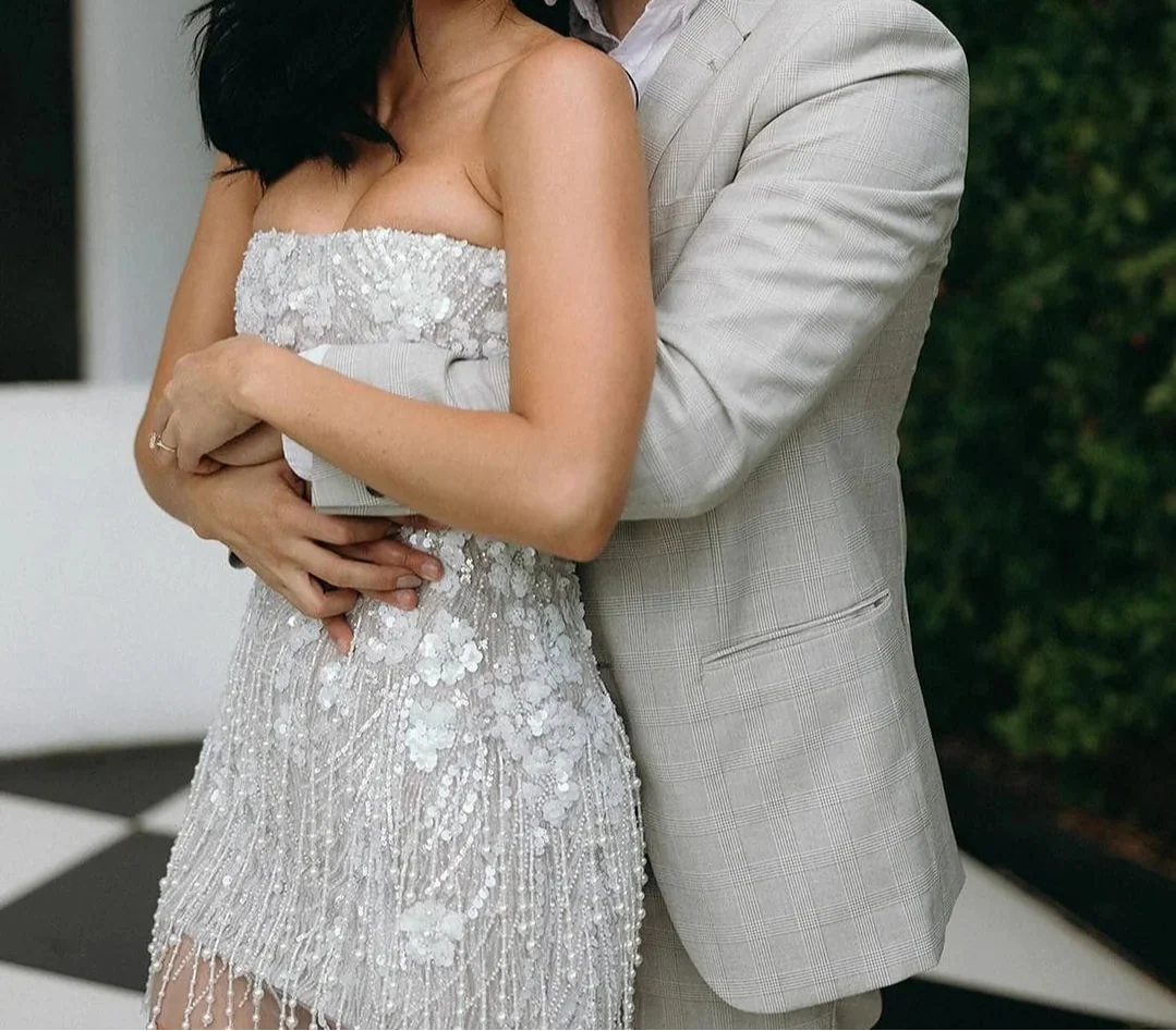 Niulatu Bodycon Strapless Beaded Short Outdoor Party Dress Fashion Wedding Dress HZ1031