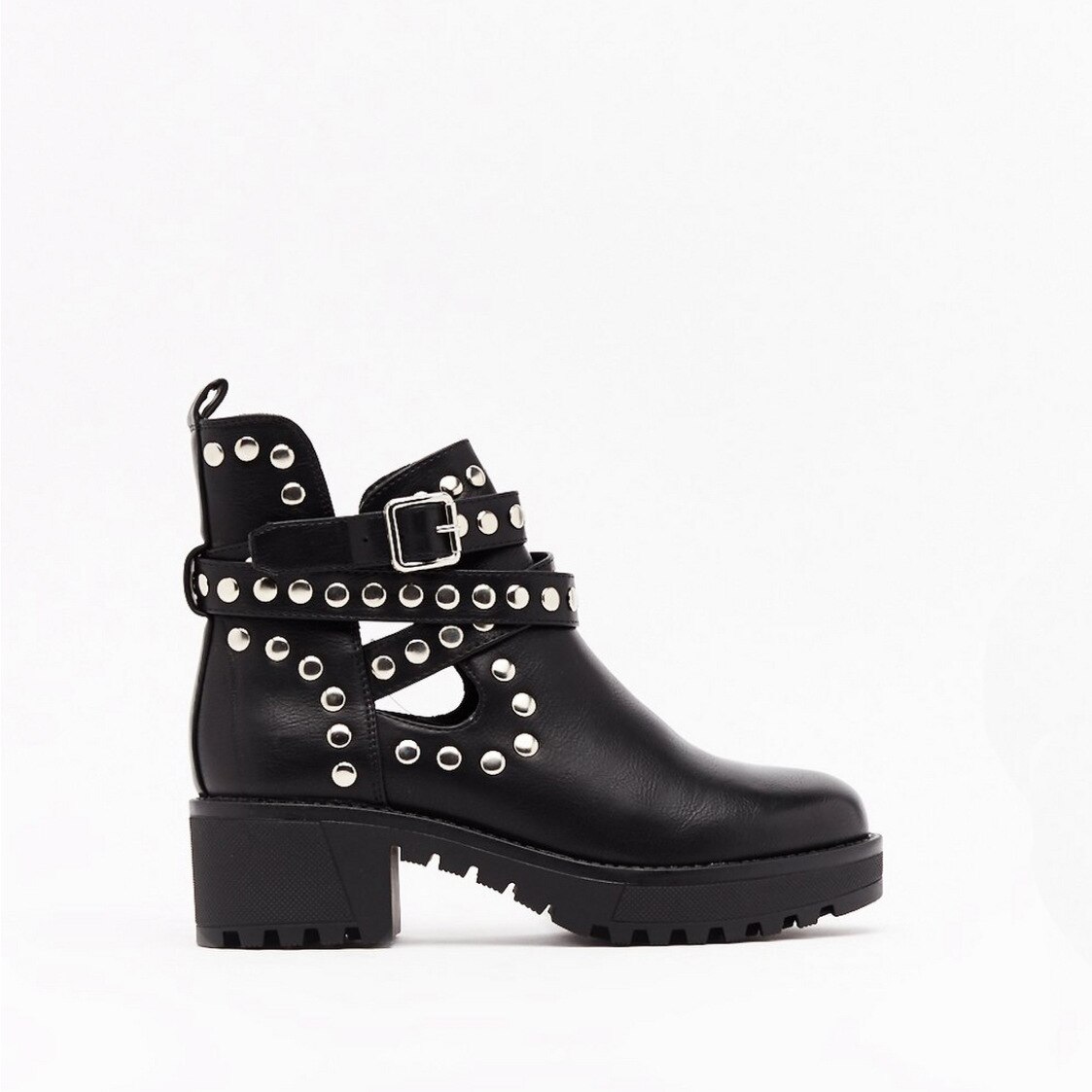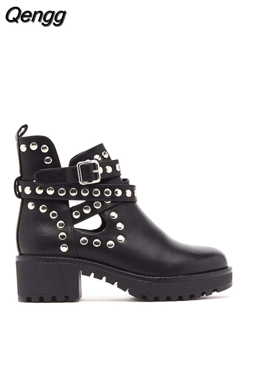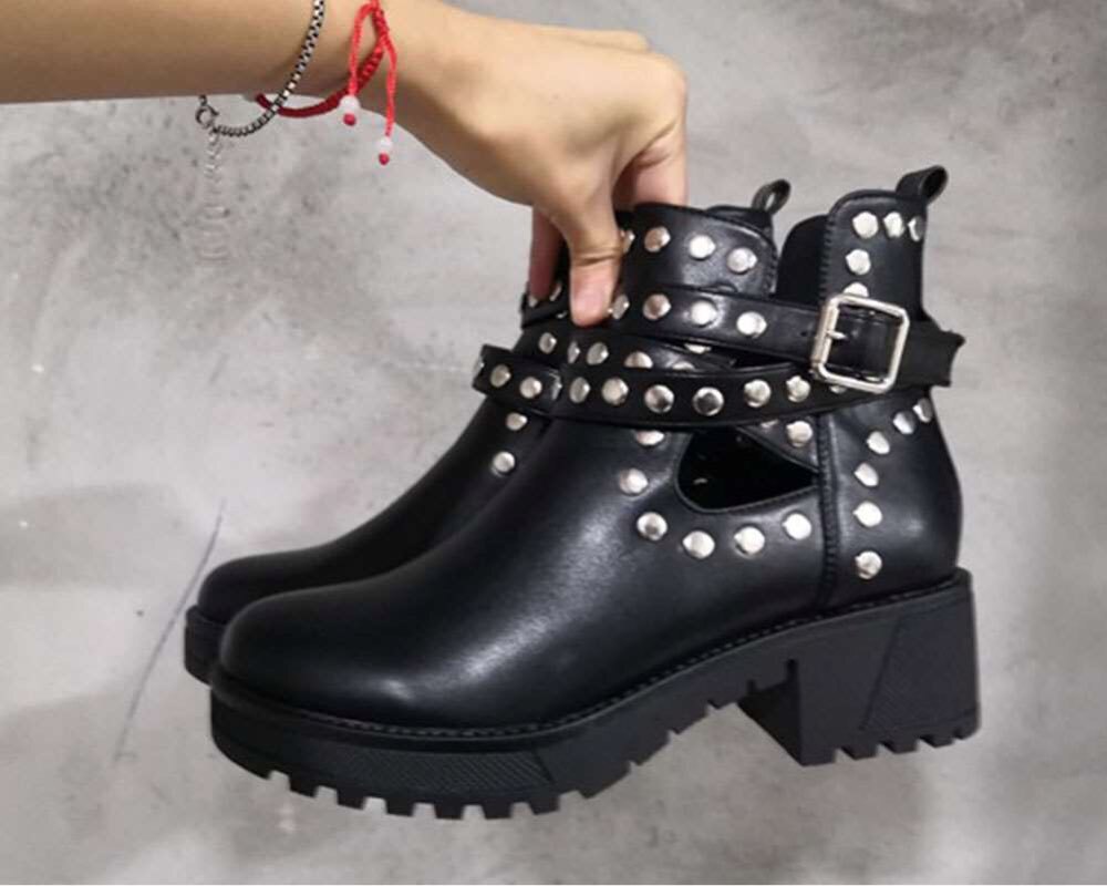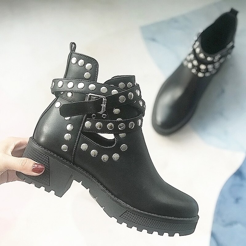 Niulatu Boots Ladies Leather Ankle Boots Spring Autumn Thick Sole Biker Shoes Ladies Punk Pearl Rivet Shoes Large Size DJSE