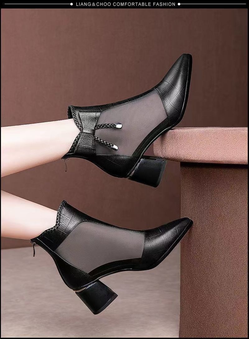 Niulatu Boots Woman,Summer High Heels Mesh Shoes,Back Zipper,Bowtie,Pointed Toe,Female Footware,BLACK,FREE Dropshipping DJSE