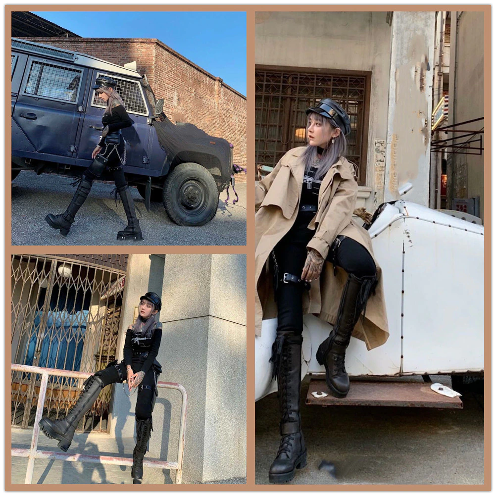 Niulatu Boots Women Cool Goth Zipper Design Cool Lace Up Chunky Heel High Quality Shoes Woman Fashion Popualr Big Size 45 DJSE