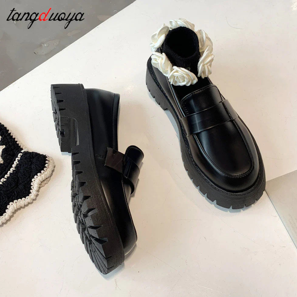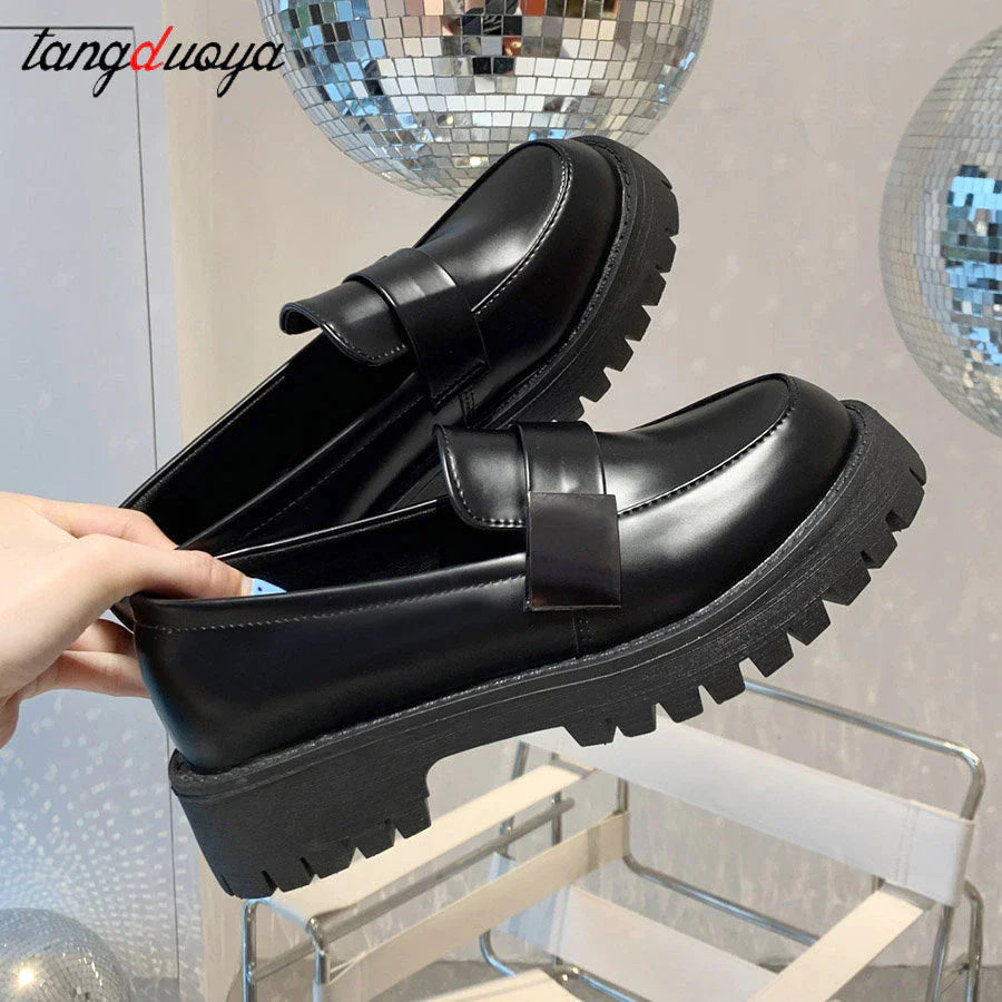 Niulatu Boussac Black Punk Platform Women Loafers Round Toe Chunky Heel Vintage Shoes Women Slip on High Heel Women Pumps DJSE
