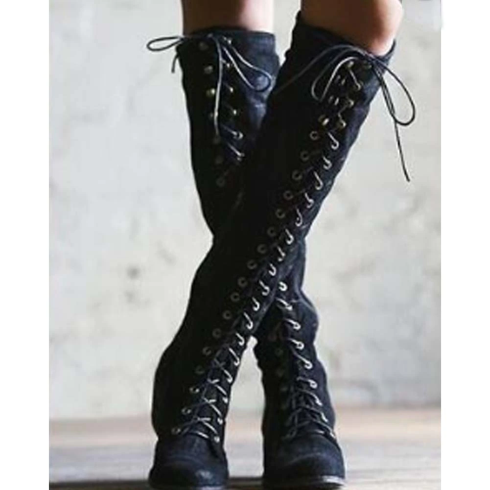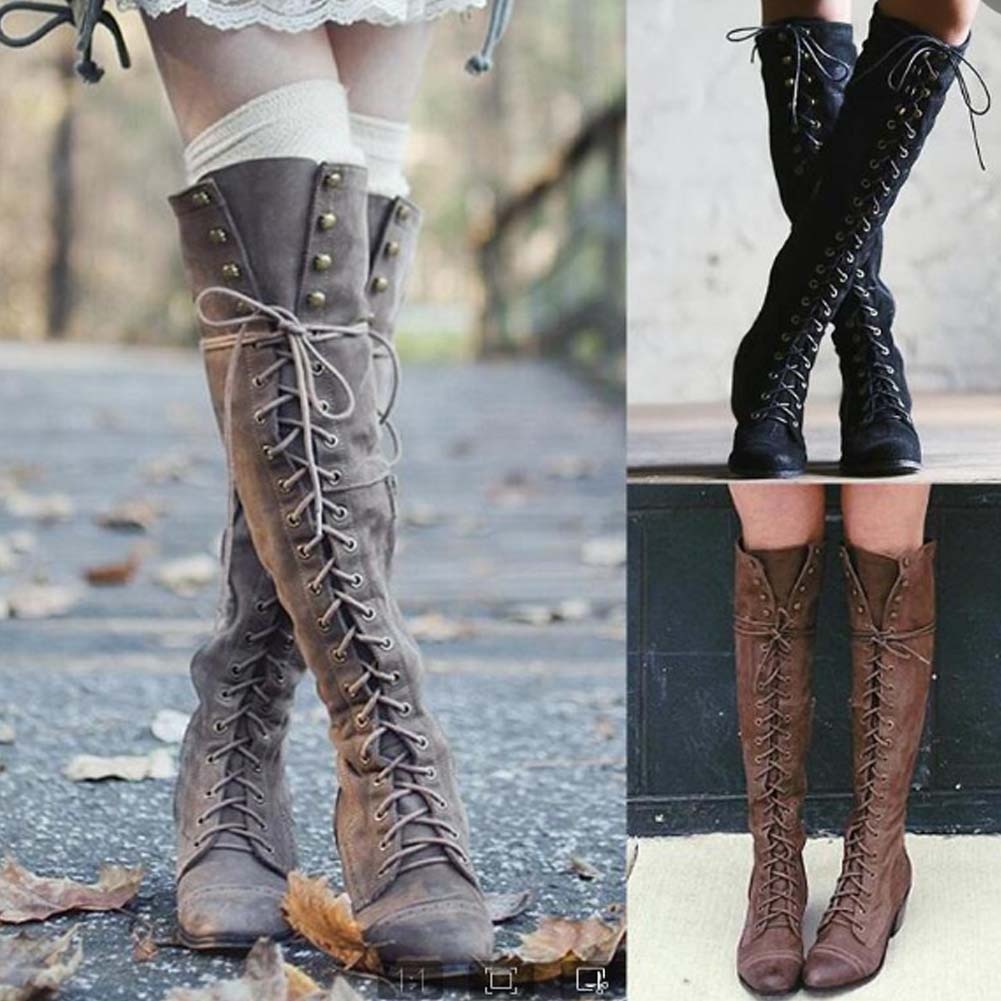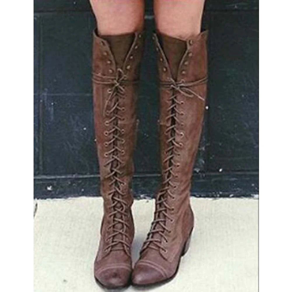 Niulatu Brand Chunky Heel Lace Up Vintage Women Knee High Boots Designer Comfy Walking Cowboy Ladies Shoes Footwear DJSE