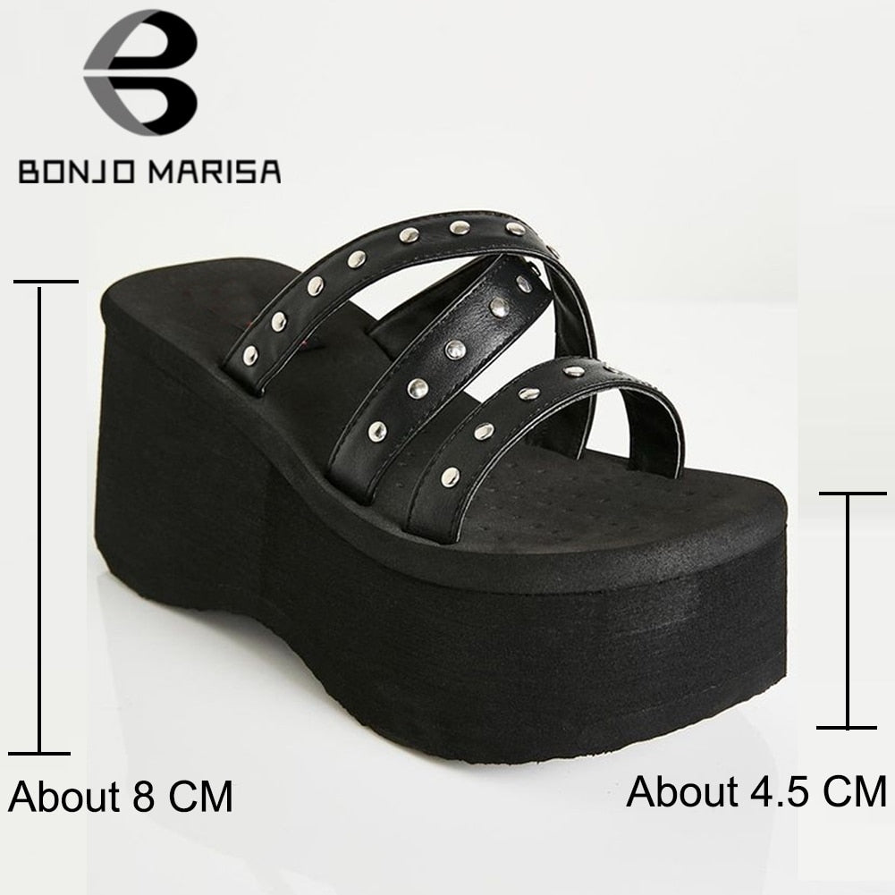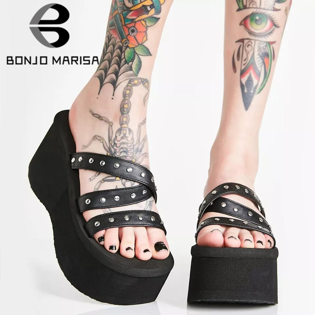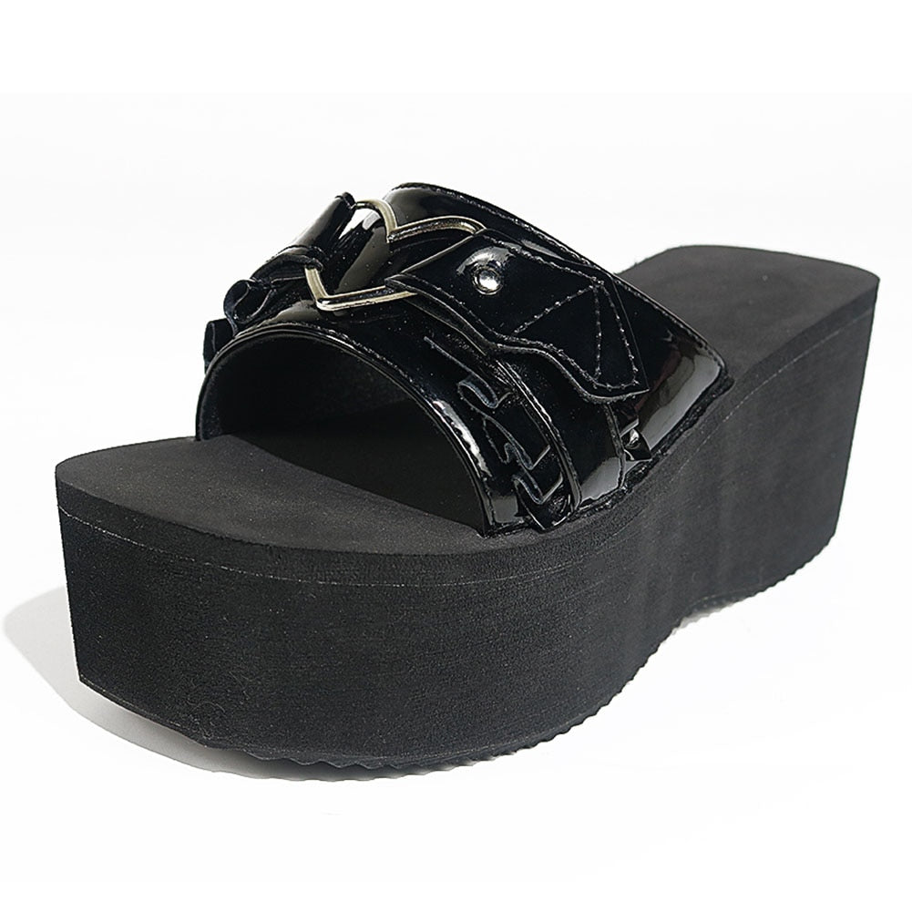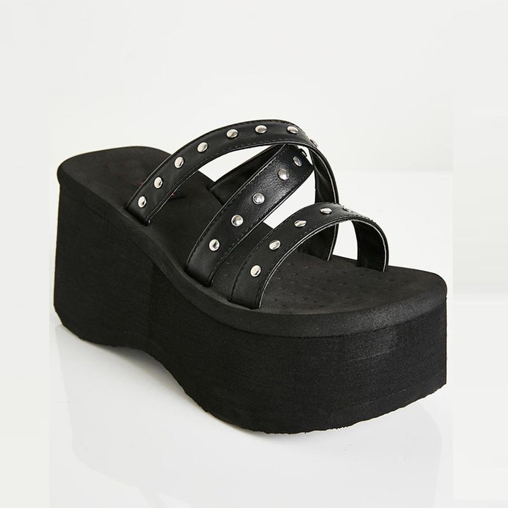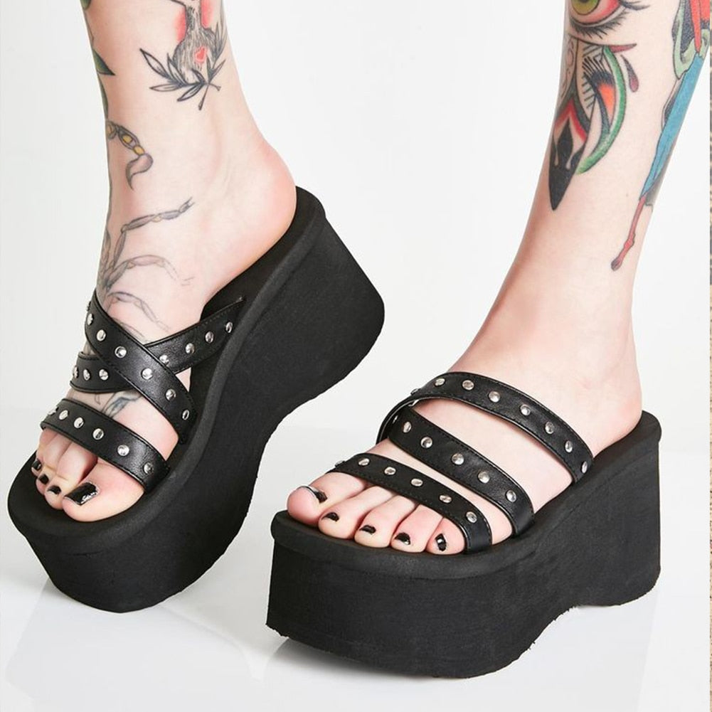 Niulatu Brand Goth Beach Punk Platform Women Slip On Sandals Shoes Strappy Wedges Open Toe Summer Black Slides Shoes Women DJSE