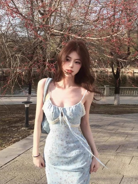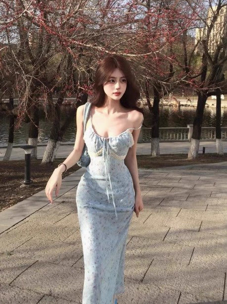 Niulatu Break French V-neck Floral Sling Dress HZ1103