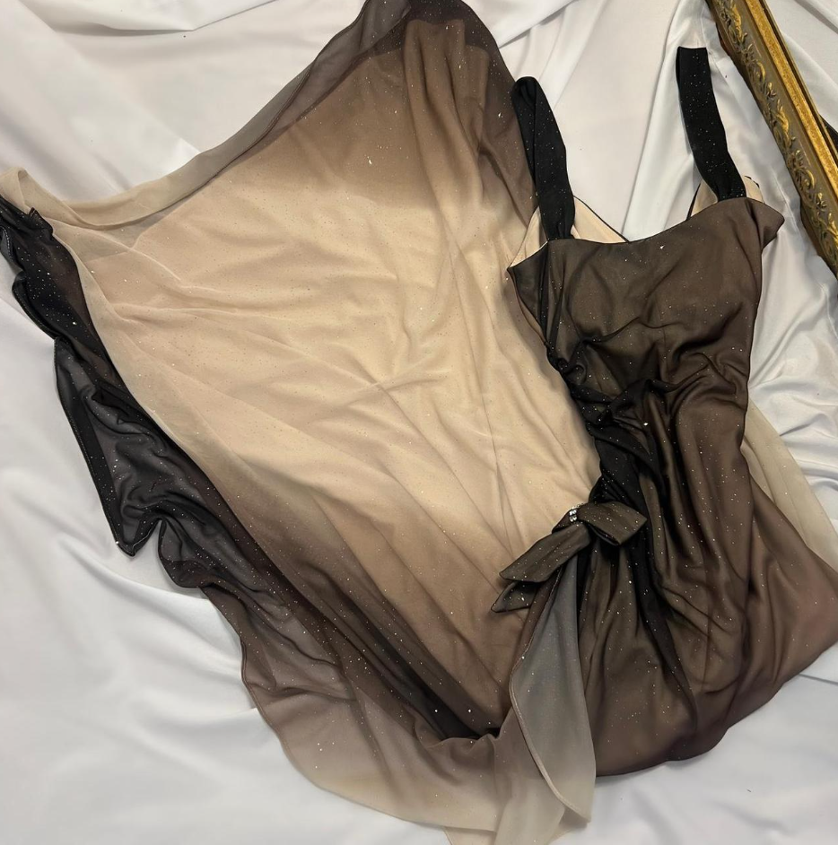 Niulatu Brown Vintage Sheath Spaghetti Strap Long Evening Gown Gorgeous Sequin Chiffon Formal Dress Birthday Dress HZ1031