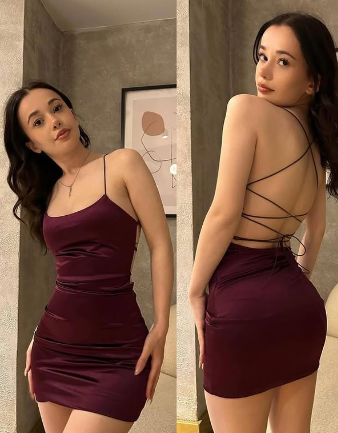 Niulatu Burgundy Sheath Spaghetti Strap Satin Short Cocktail Dress Homecoming Dress HZ0113