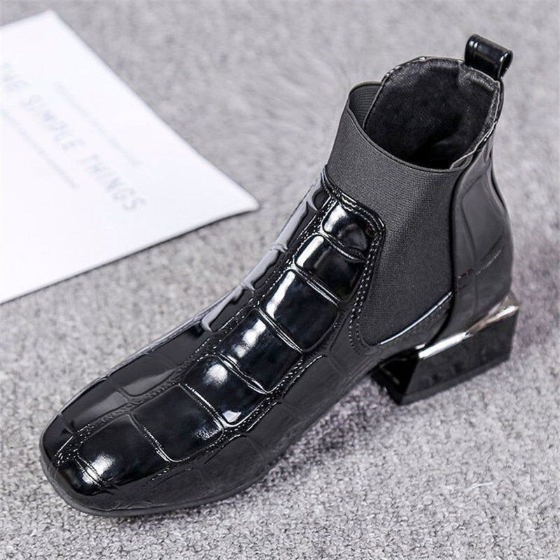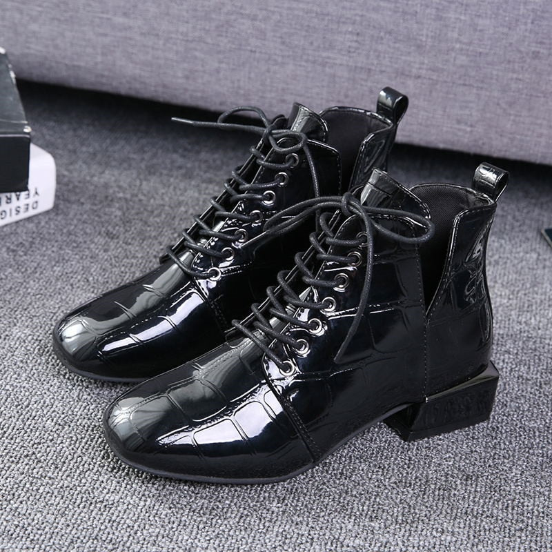 Niulatu Chic Women Boots Shiny PU Leather Autumn Winter Shoes Woman Spuare Toe Block Heels Ankle Boots Female Botas Zapatos Mujer DJSE