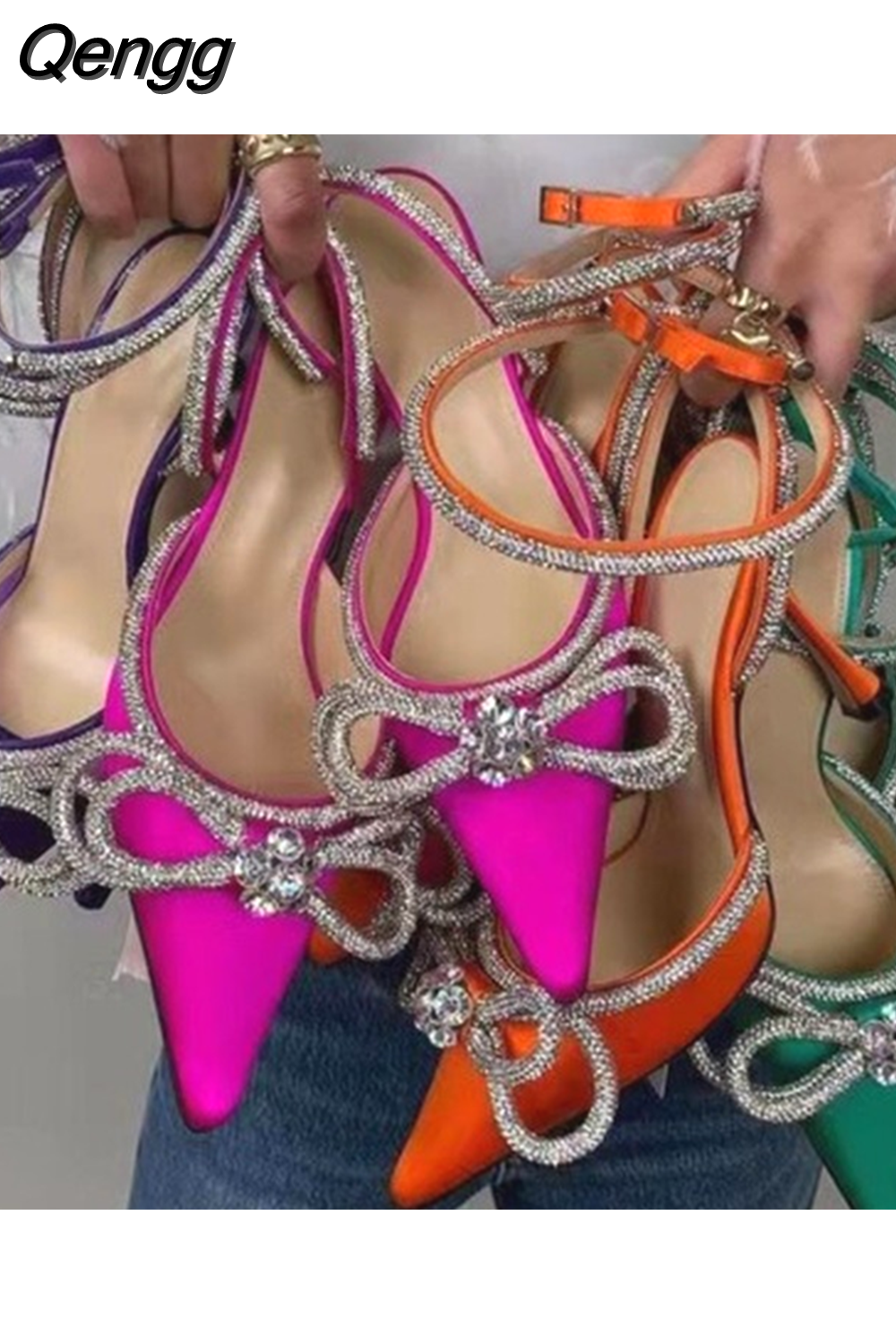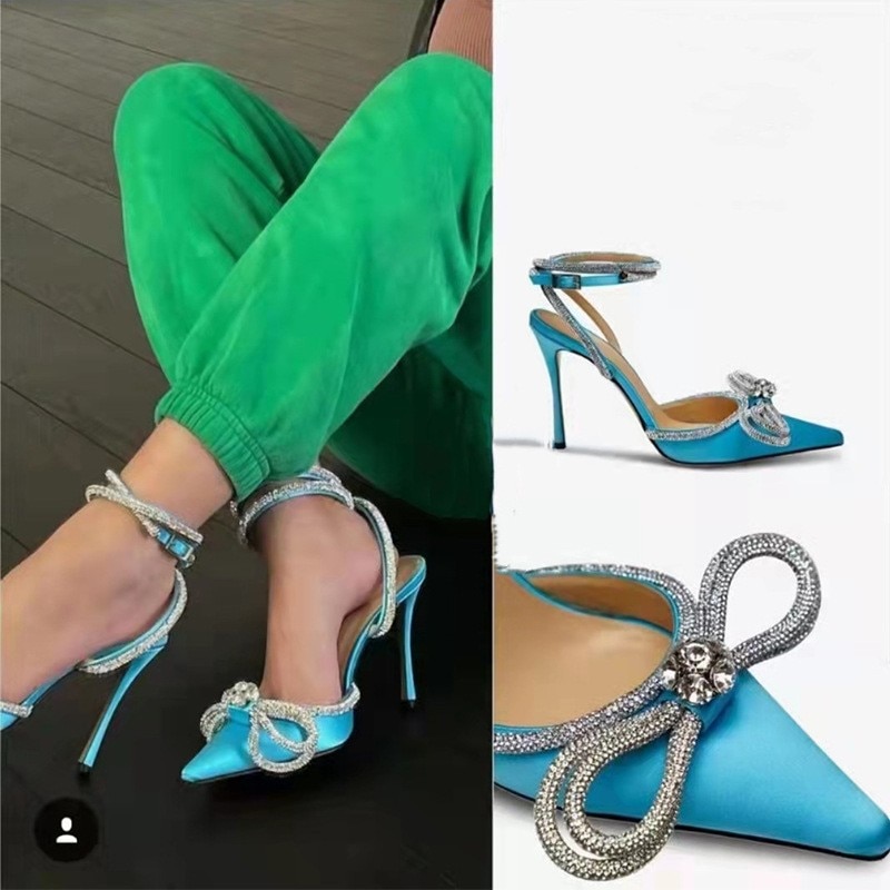 Niulatu color sandals women's new bow rhinestone high heels large size sandals stilettos shoes sandals women DJSE