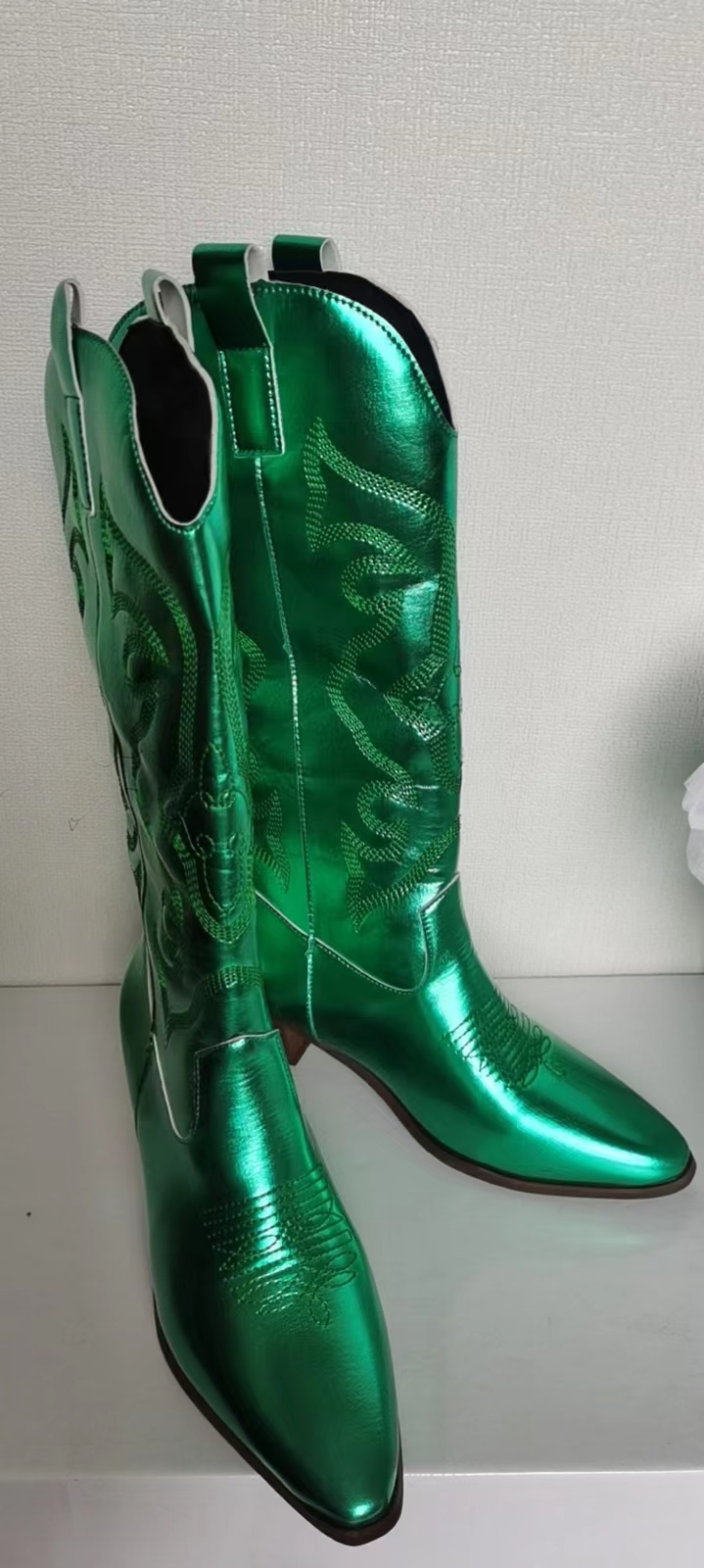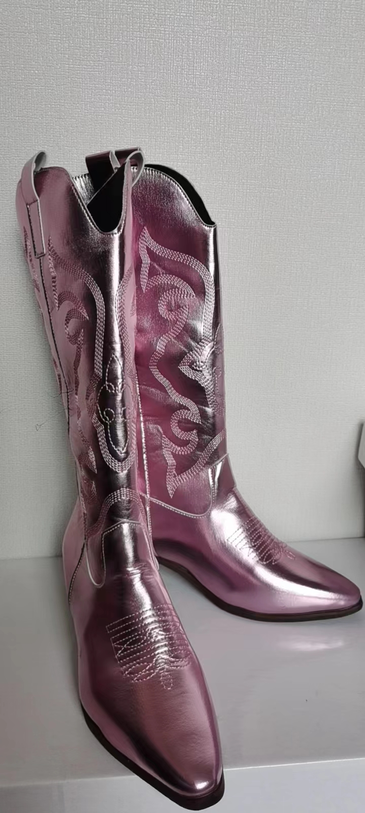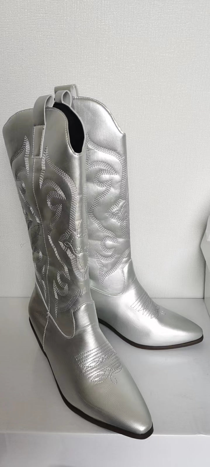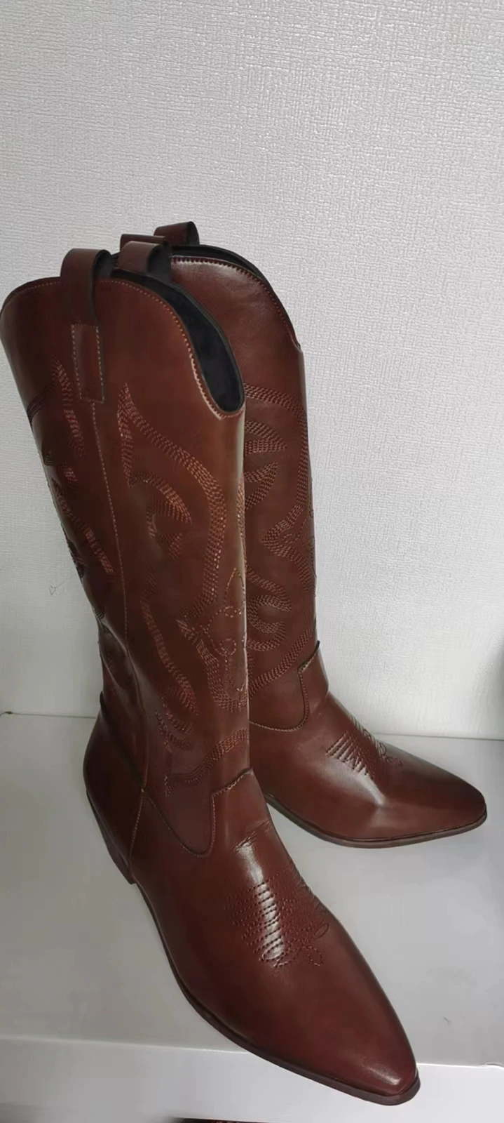Niulatu Cowgirl Western Boots for Women 2025 Zip Embroidered Pointed Toe Stacked Heel Mid Calf Autumn Trendy Boots Shoes DJSE