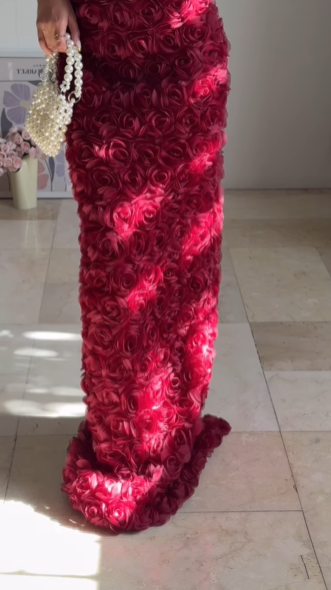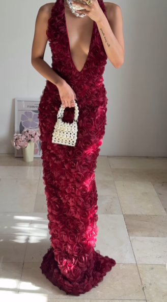 Niulatu Deep V Burgundy Rose Flowers Sheath Long Prom Dress Evening Dress HZ1007