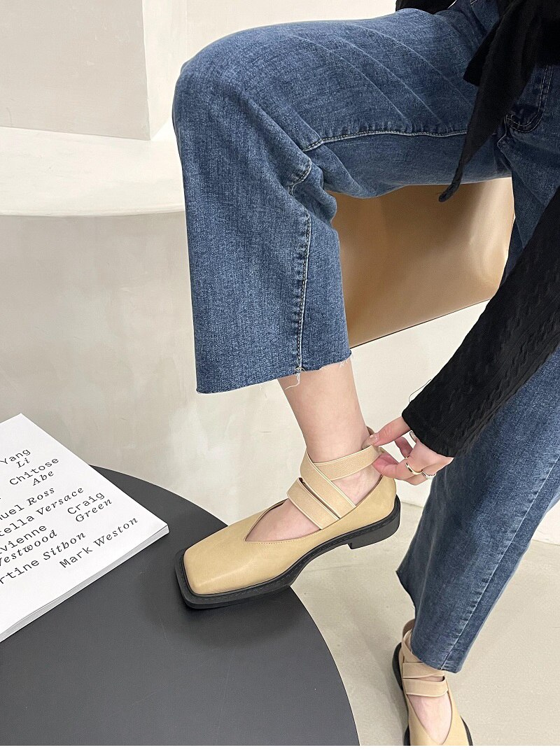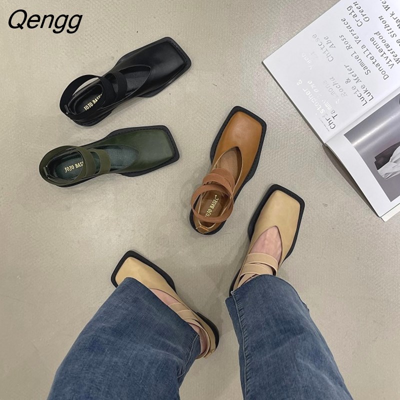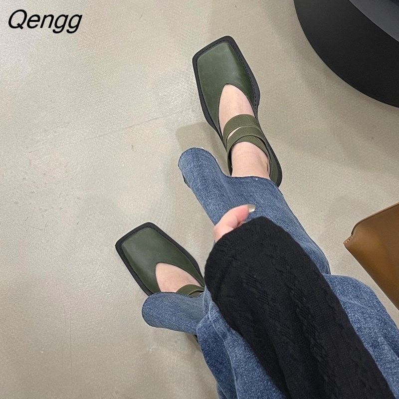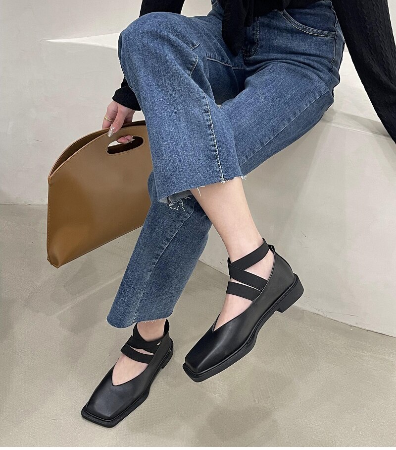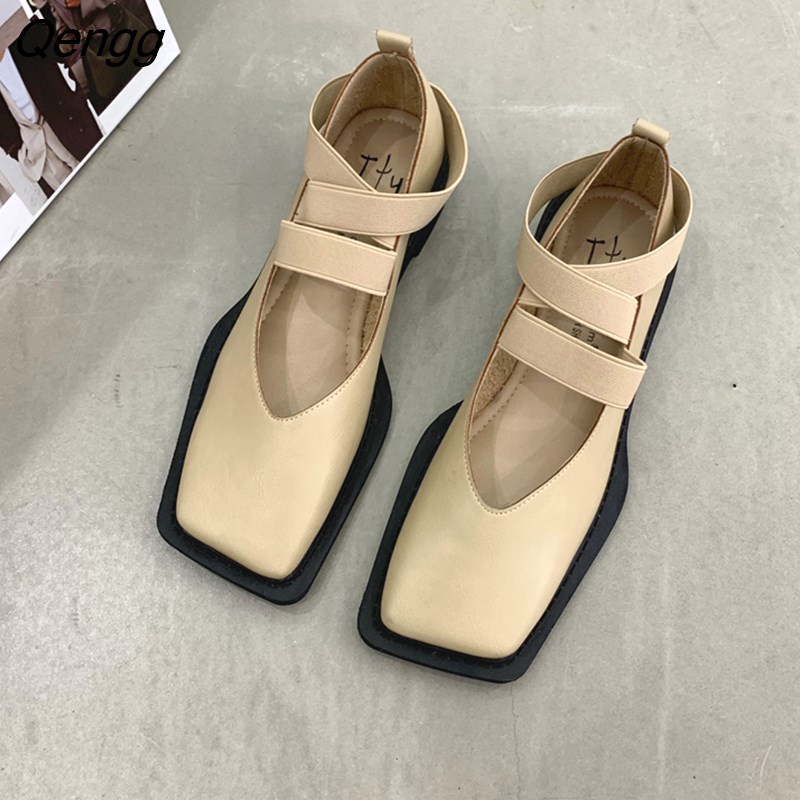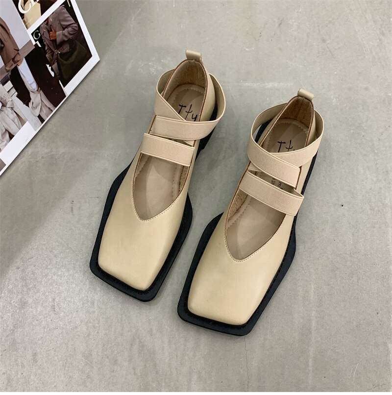 Niulatu Design Mary Jane Shoes Women Elegant Square Toe Flats Summer Outdoor Elastic Band Sandal Fashion Ladies Shoes DJSE