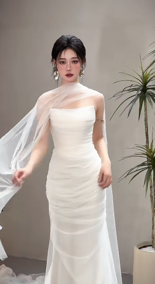 Niulatu Elegant Mermaid Strapless Chiffon Long Wedding Dresses HZ1110