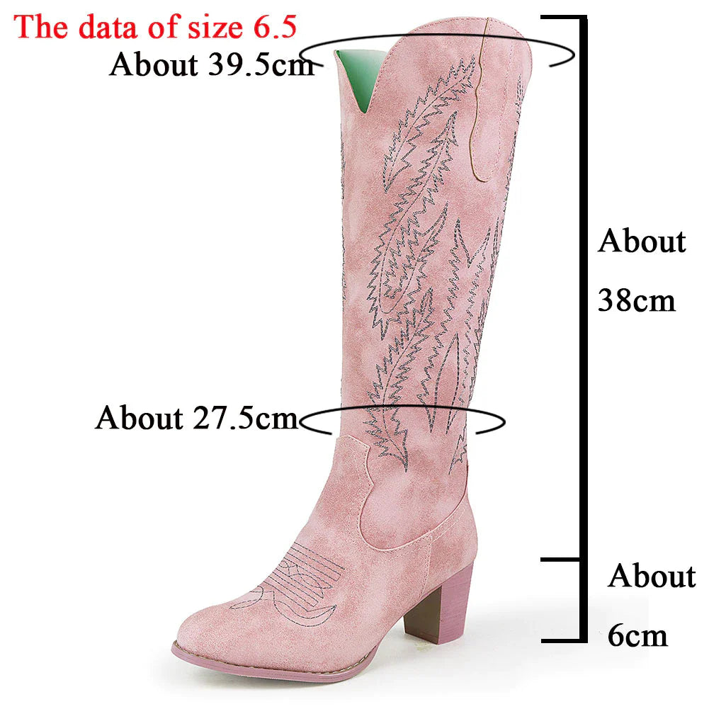 Niulatu Embroidery Mid Calf Boots Women Pink Cowboy Cowgirls Casual Western Boots Chunky Pointed Toe Shoes Woman Wholesale DJSE