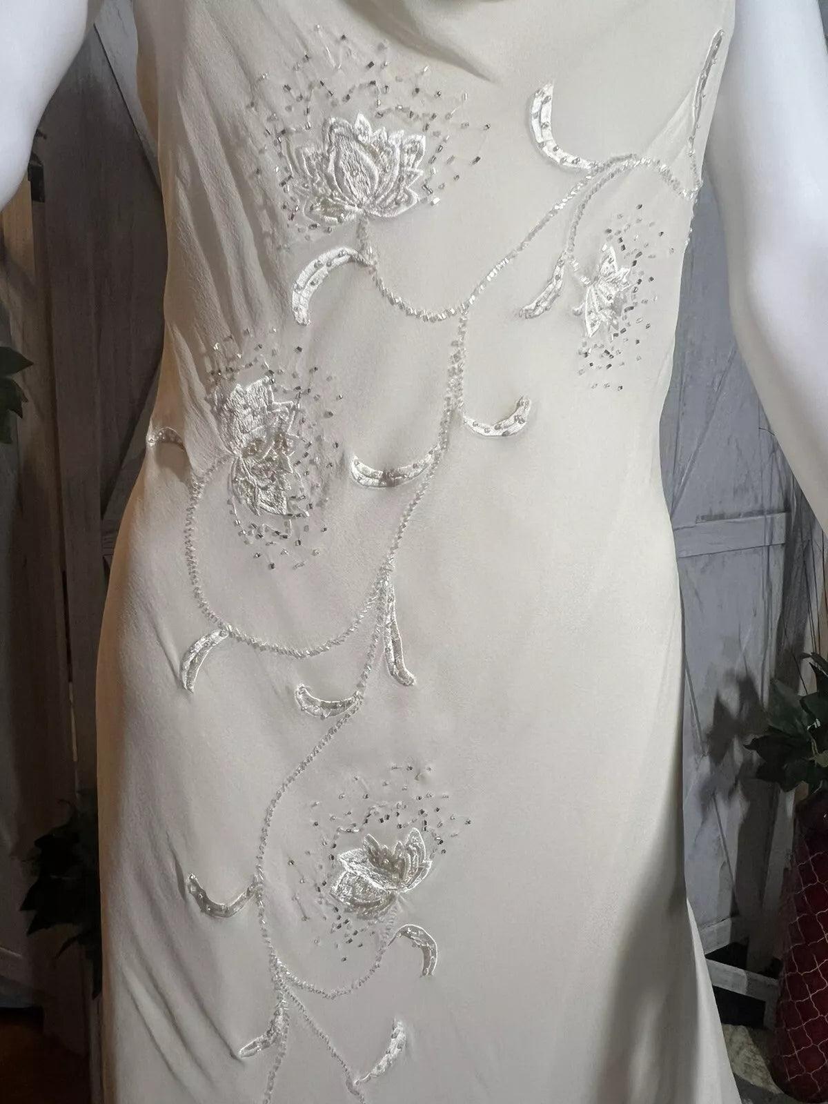 ??90s Fairytale White Chiffon & Tulle Prom Dress for Pool Party -Vintage Beading & Embroidery Ball Gown for Formal Events ED01930