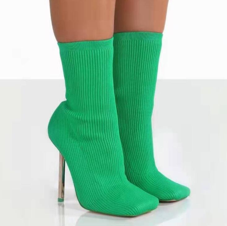 Niulatu Fashion Luxury Lady Square toe Short Kitted Boot Female Stiletto High Heels shoes Women Knee Boots DJSE