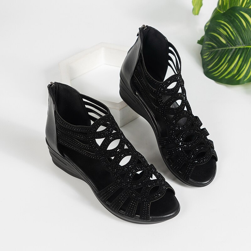 Niulatu Fashion Retro Rhinestone Wedge Sandals Outdoor Hollow Zipper Sandals 2025 Summer New Casual Roman Sandals Women's Shoes DJSE