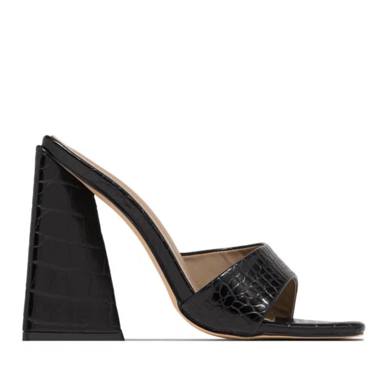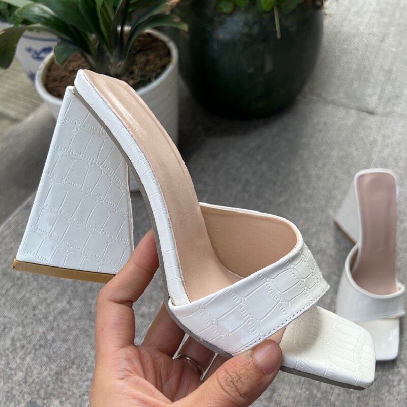 Niulatu Fashion Triangle Heel Women's Slippers High Heel Square Toe Sandals Ladies Summer Daily Muller Shoes Snake Pattern Slippers DJSE