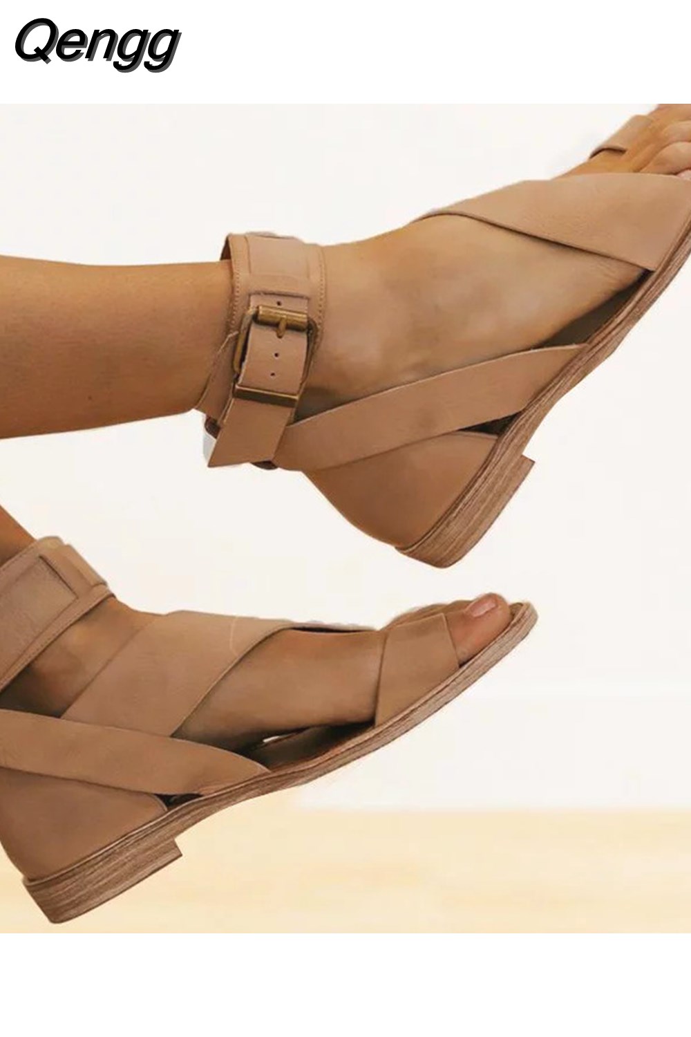 Niulatu Fashion Women's Sandals Buckle Roman Slippers Flat Womens Shoes Comfort Summer Outdoor Sports Beach Casual Shoes DJSE