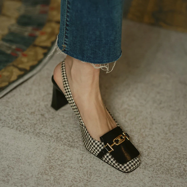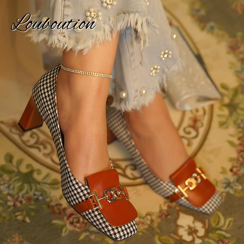 Niulatu Fashion Women's Shoes Thousand Bird Lattice Soft Leather Ladies Pumps Spring Square Toes Chunky Heels Female Shoes DJSE