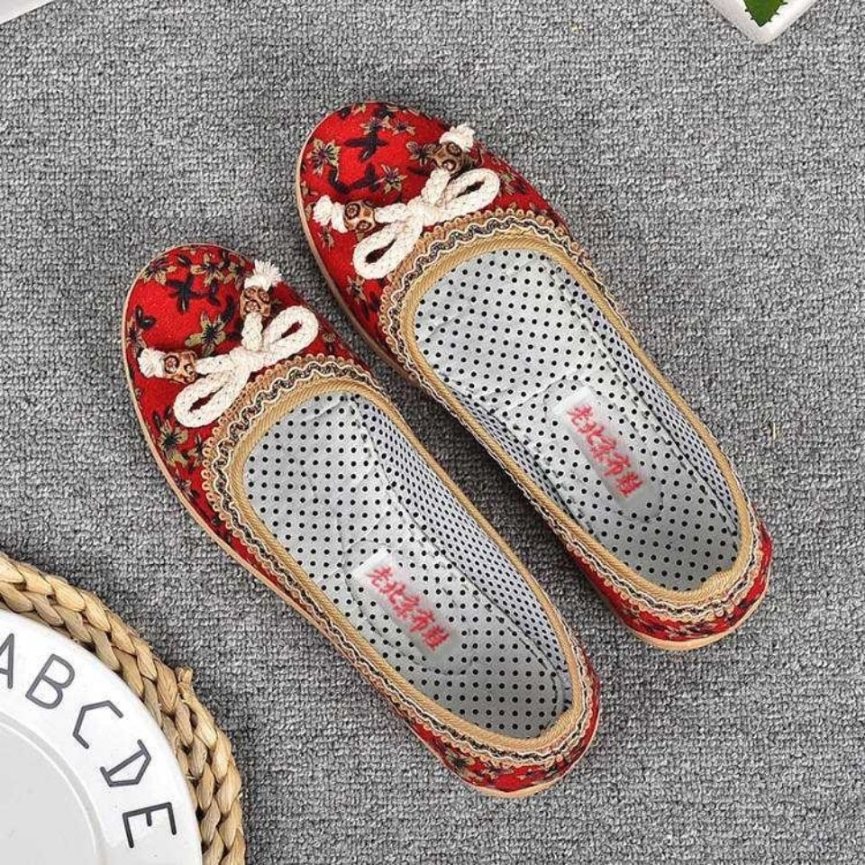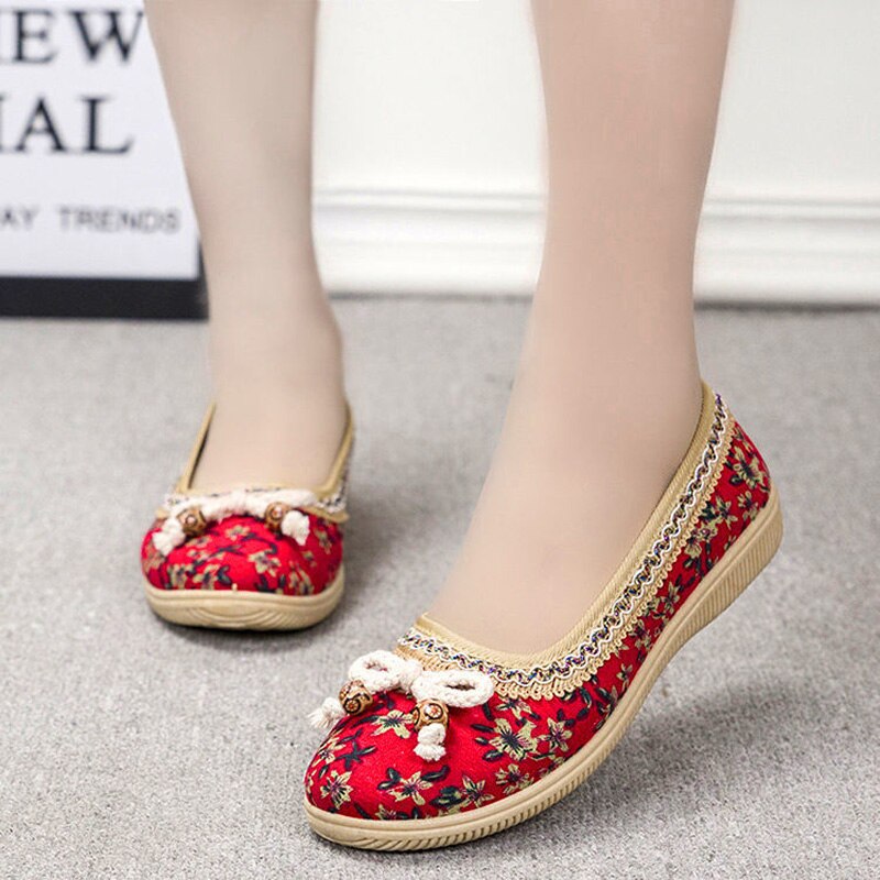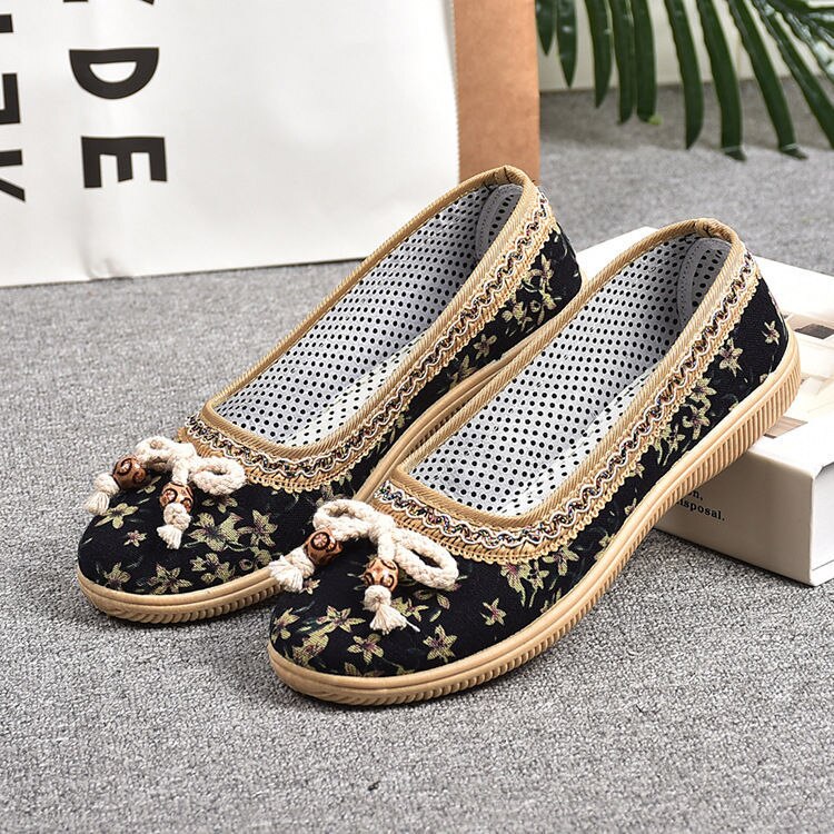 Niulatu Flat Shoes High Quality Cute Women Shoes National Wind Shallow Mouth Floral Flower Comfortable Soft Bottom Shoes DJSE
