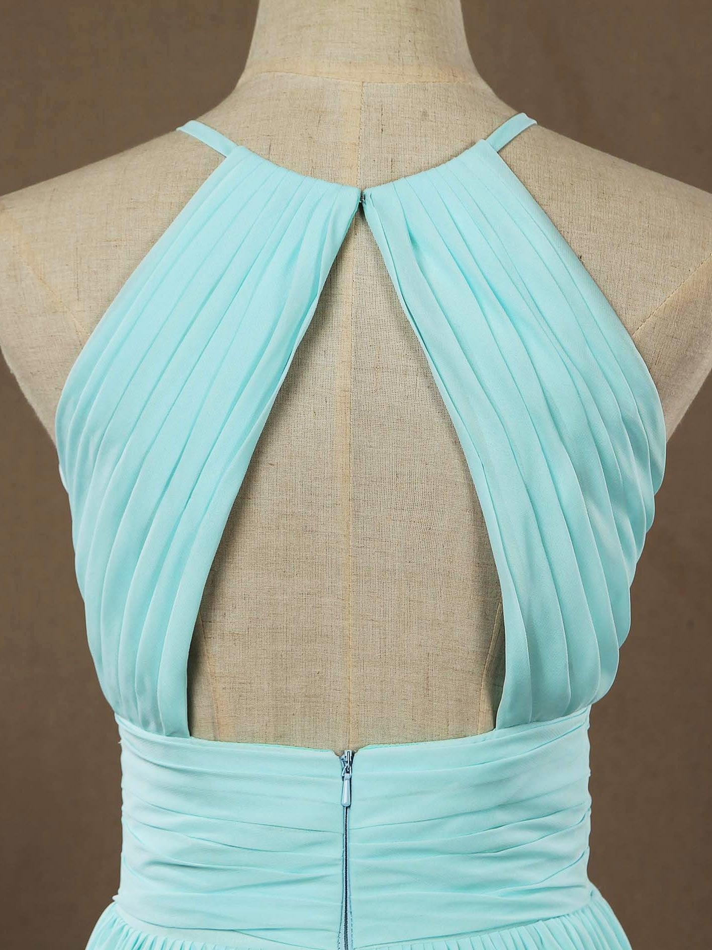 Chiffon Floor Length Bridesmaid Dresses A-Line Halter Open Back Pleats Made-to-order.