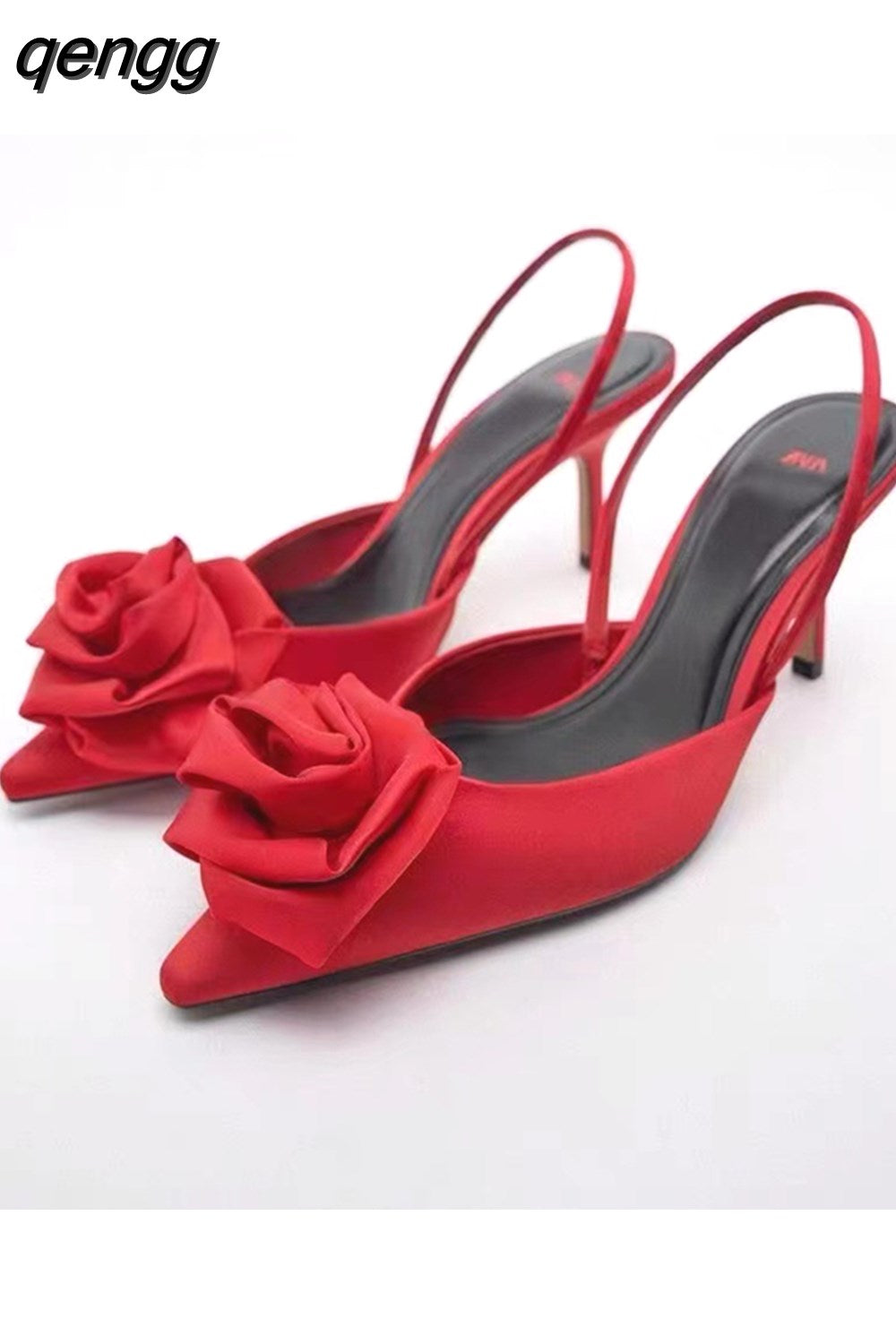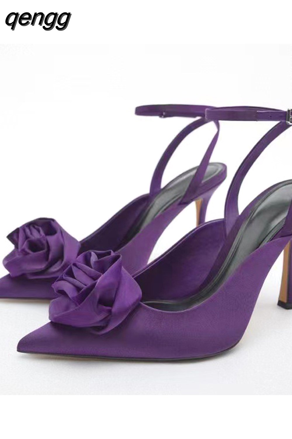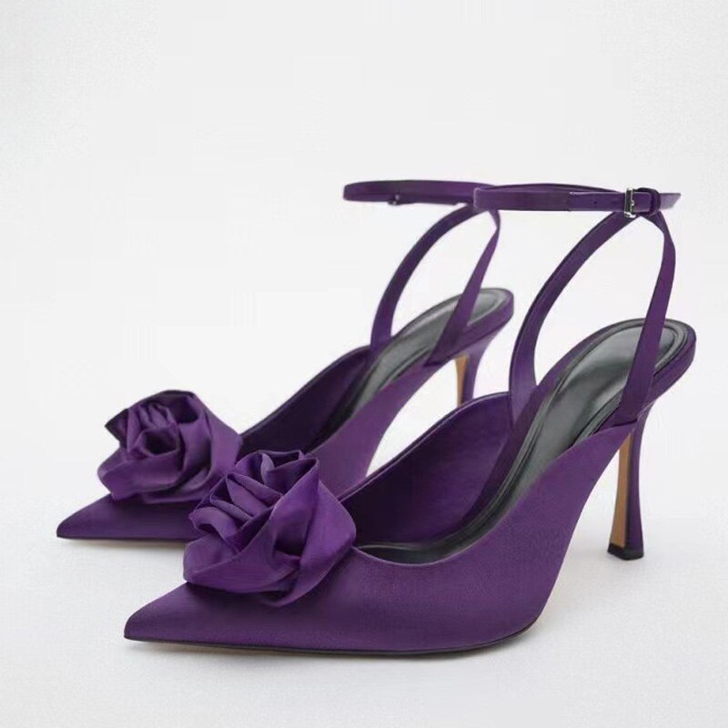 Niulatu Floral Pumps with Pointed Toe and Stiletto Slingback Strap Chunky Heels Party Prom Shoes Women DJSE