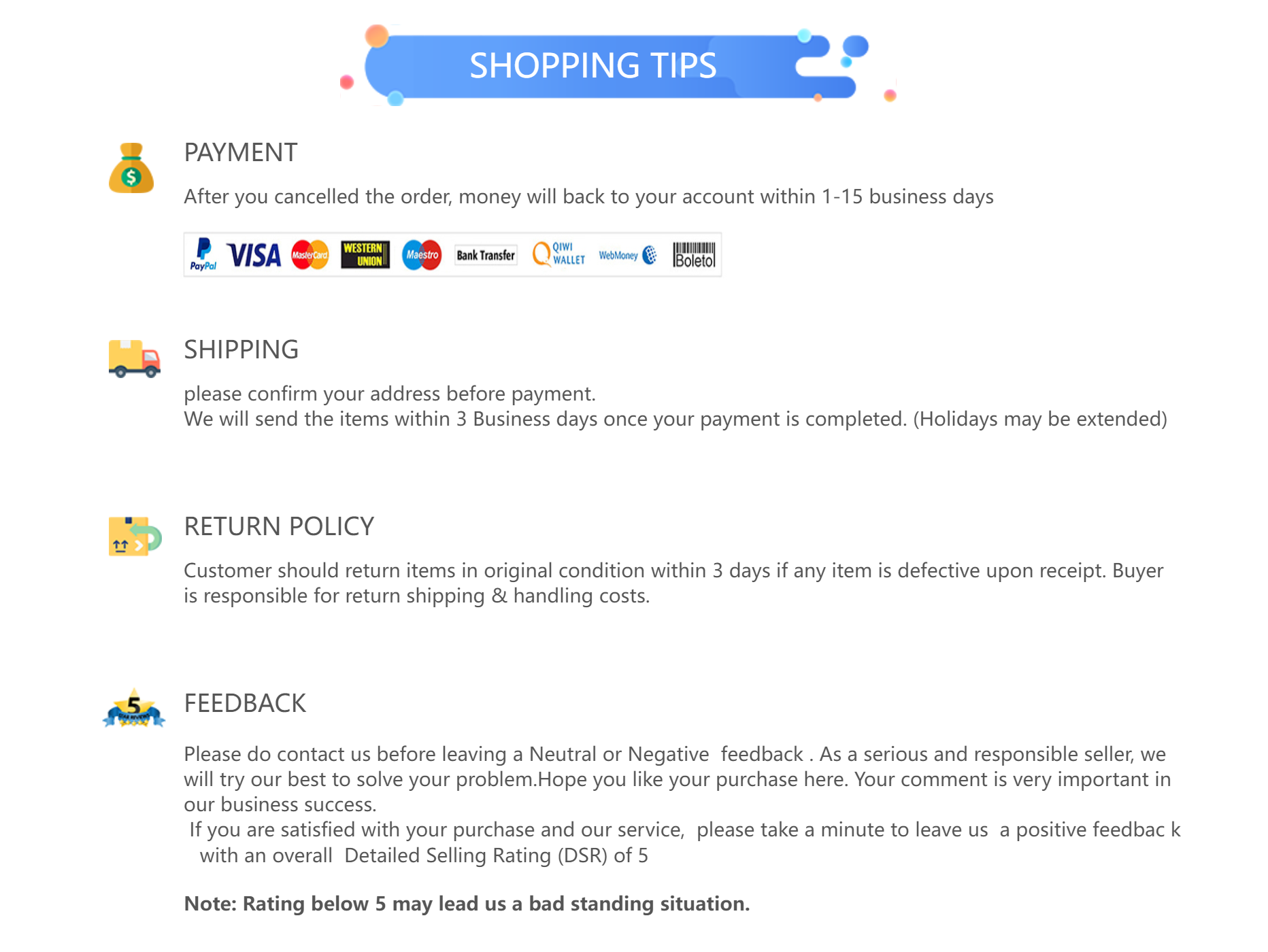 Returns: Fast refund,100% Money Back Guarantee.