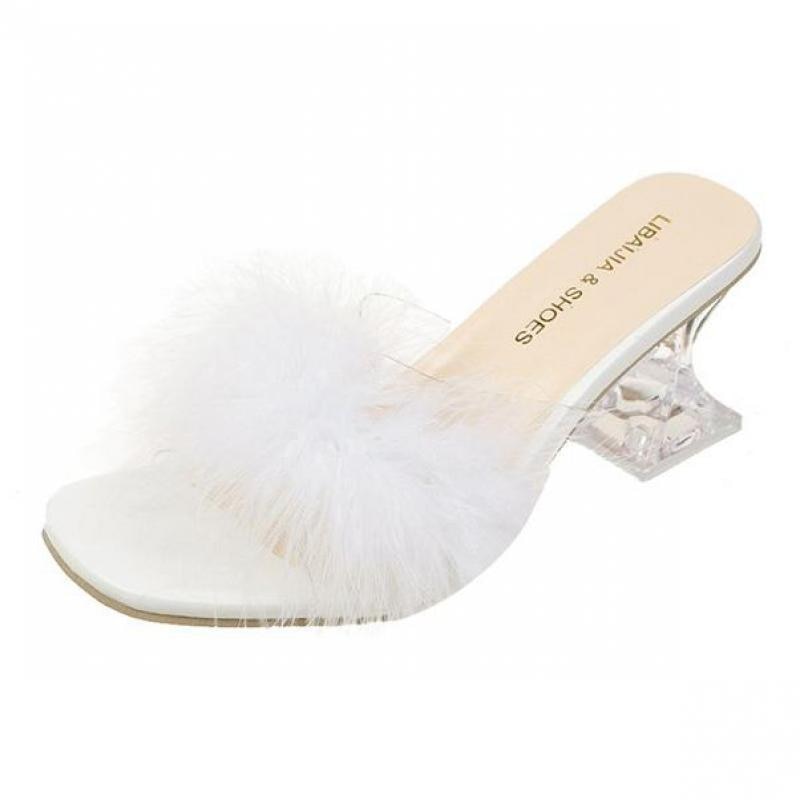 Niulatu Fluffy Peep Toe Sexy High Heels Women Shoes Fur Feather Lady Fashion Slip On 2025 Ytmtloy Indoor House Slippers DJSE
