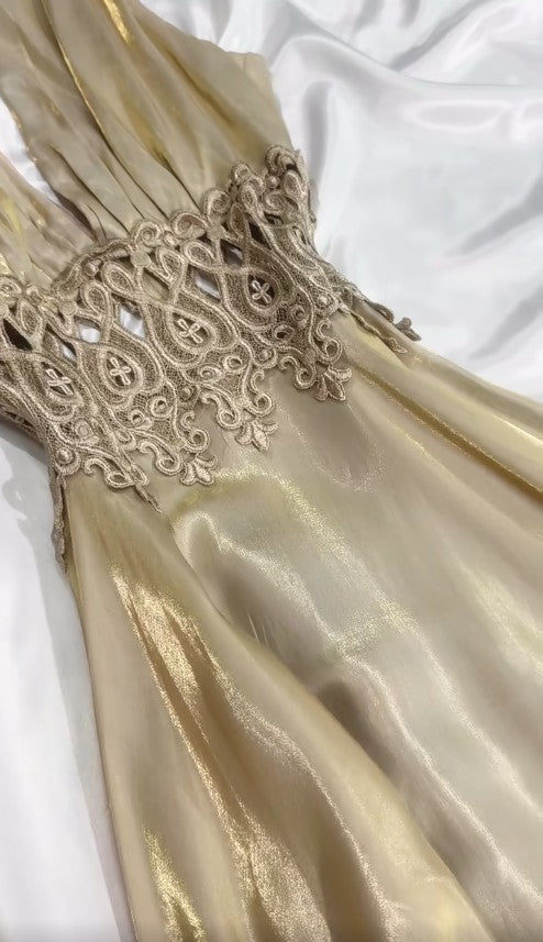 Niulatu Glitter Satin Deep V A-Line Prom Dress Backless Party Dresses HZ1103