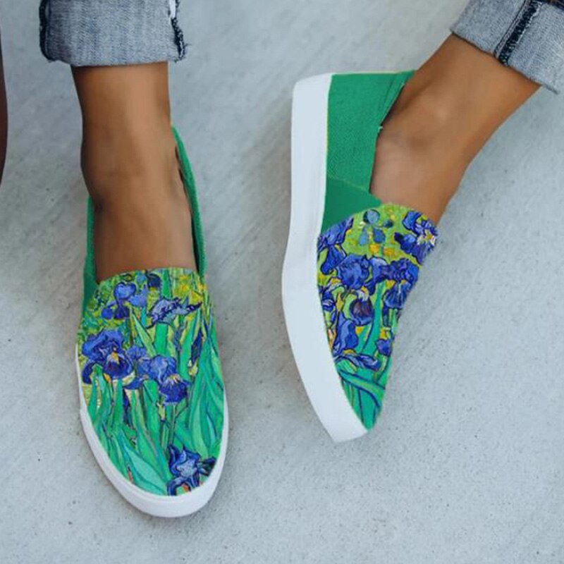 Niulatu Graffiti Women Flat Shoes Shallow Thick Bottom Casual Canvas Female Footwear Spring Slip On Women's Shoes Plus Size 2025 DJSE