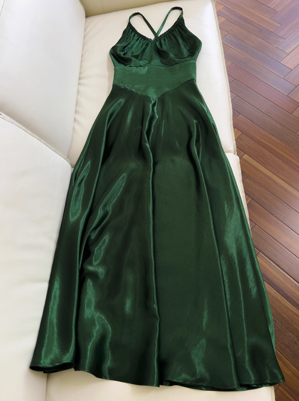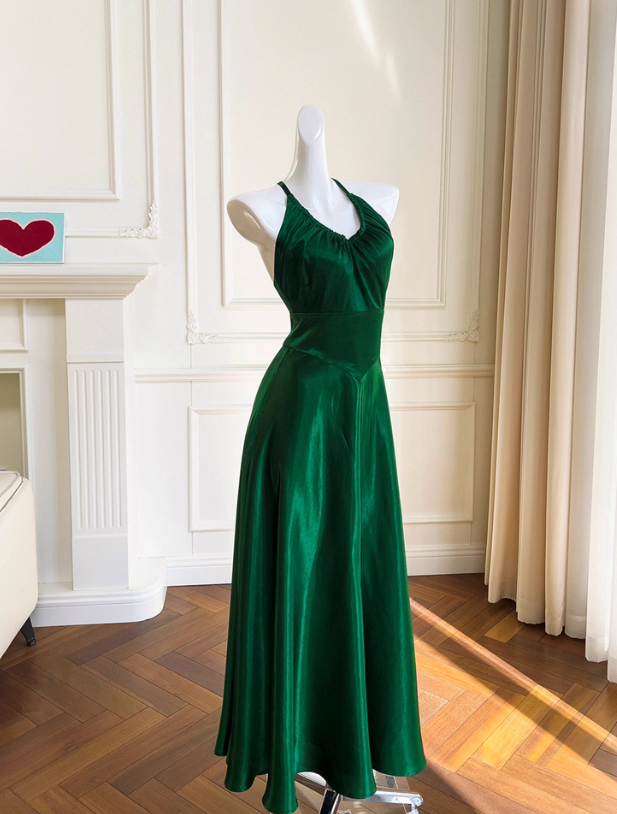 Niulatu Green A Line Halter Satin Prom Dress Vacation Dress Wedding Guest Dress HZ0113