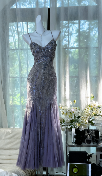 Niulatu Green Evening Dressses Vintage Spaghetti Straps Mermaid Tulle Beading Long Stunning Prom Dresses Elegant Formal Dresses HZ1031