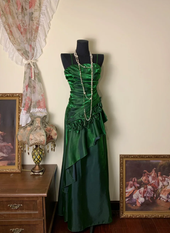Niulatu Green Formal Dresses Spaghetti Straps Ruffles Long Prom Dresses Sheath Evening Dresses HZ1026