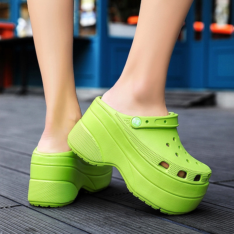 Niulatu Green Platform High Heels Sandals Non-slip Wedges shoes for Women 10 cm Increase Fashion Garden Shoes DJSE