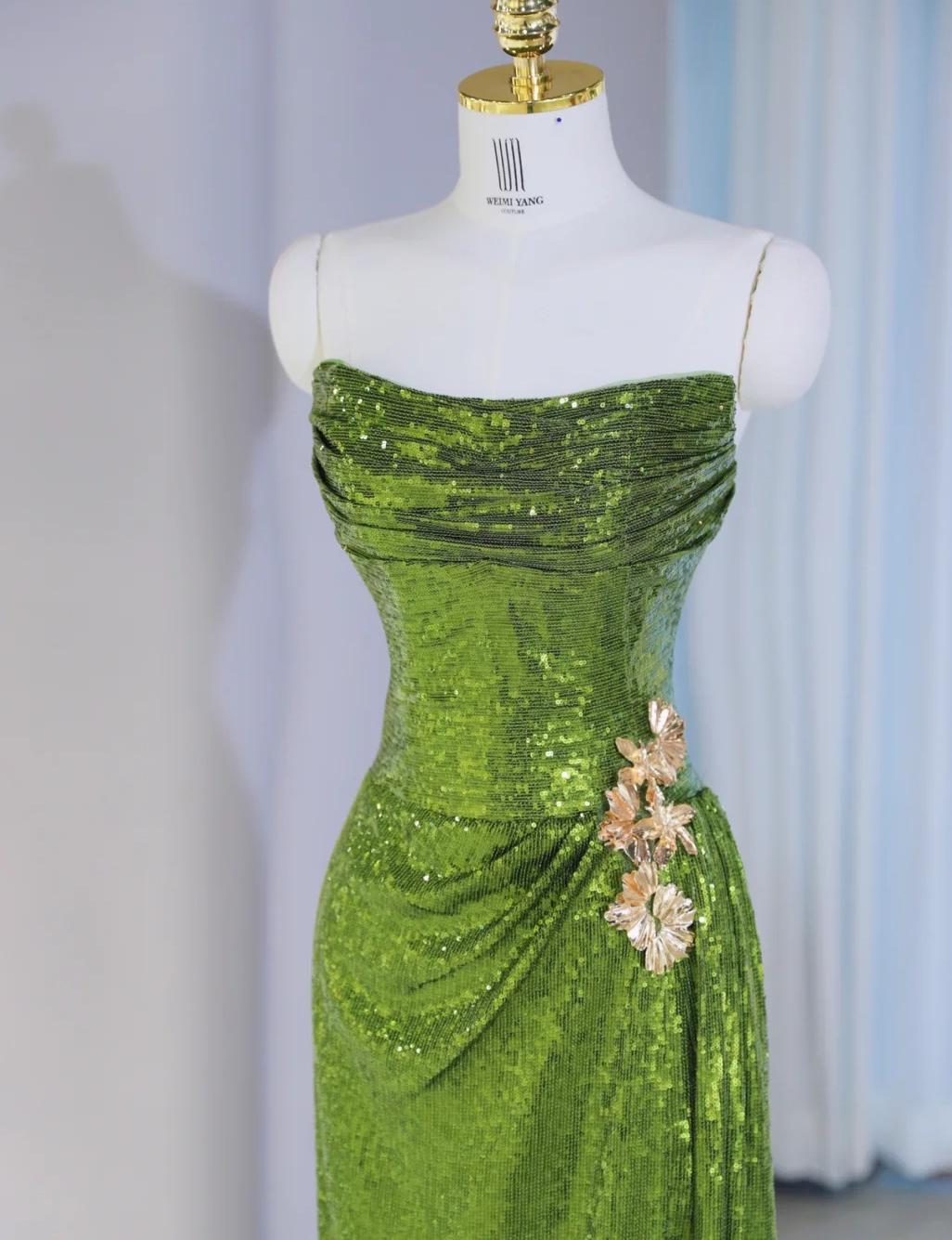 Niulatu Green Strapless Sheath Sequins Long Prom Dresses Formal Evening Gowns HZ1103