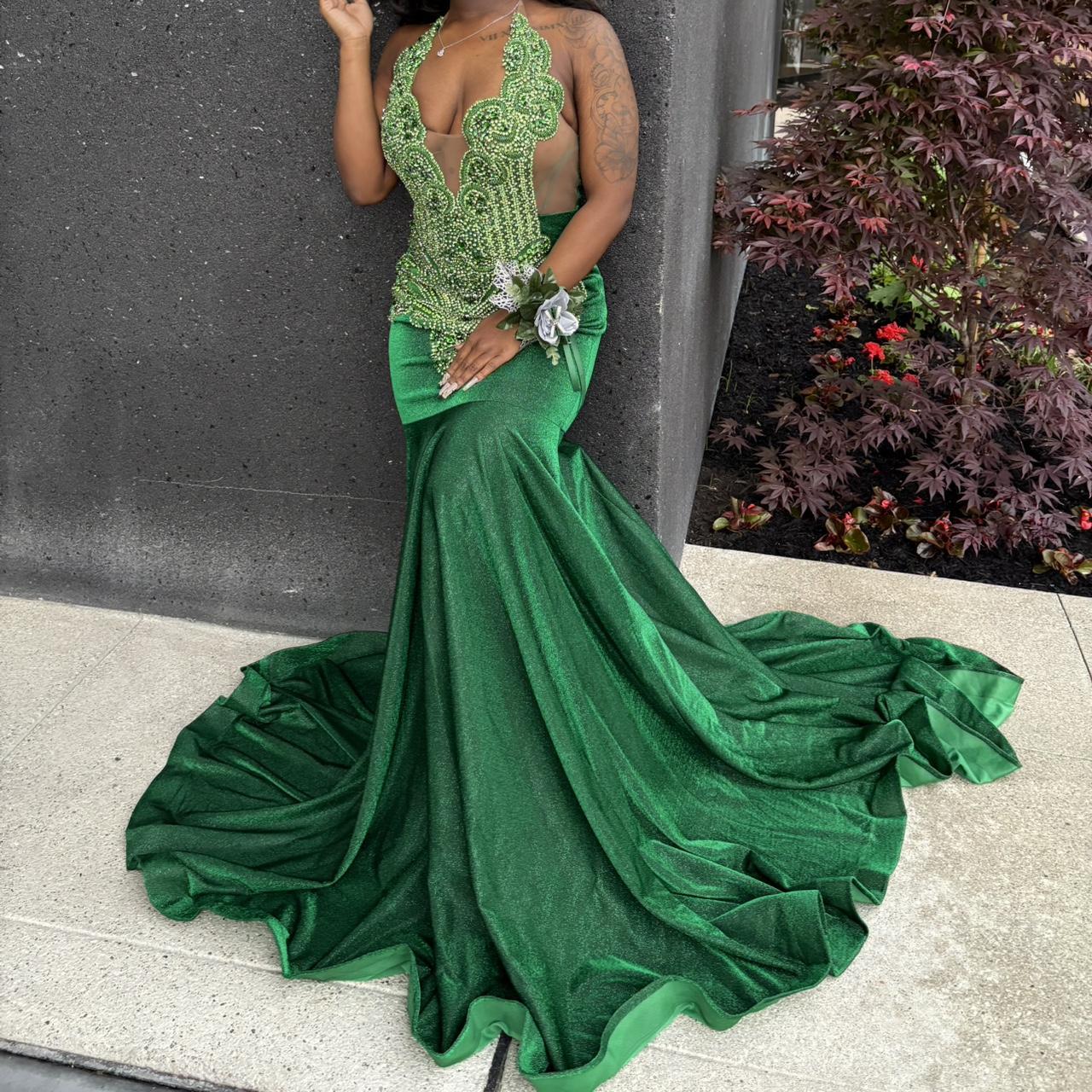 Niulatu Halter Mermaid Green Long Prom Dresses Velvet Green Evening Dresses HZ1026