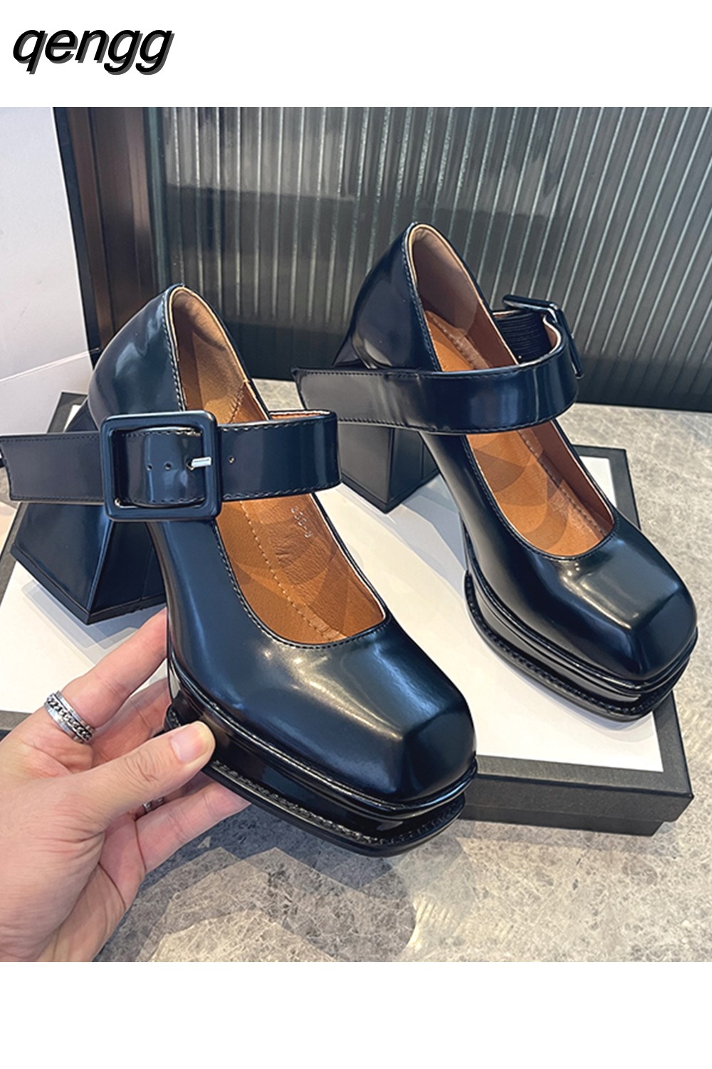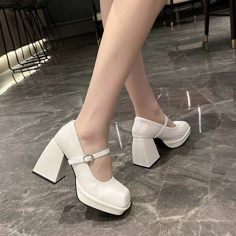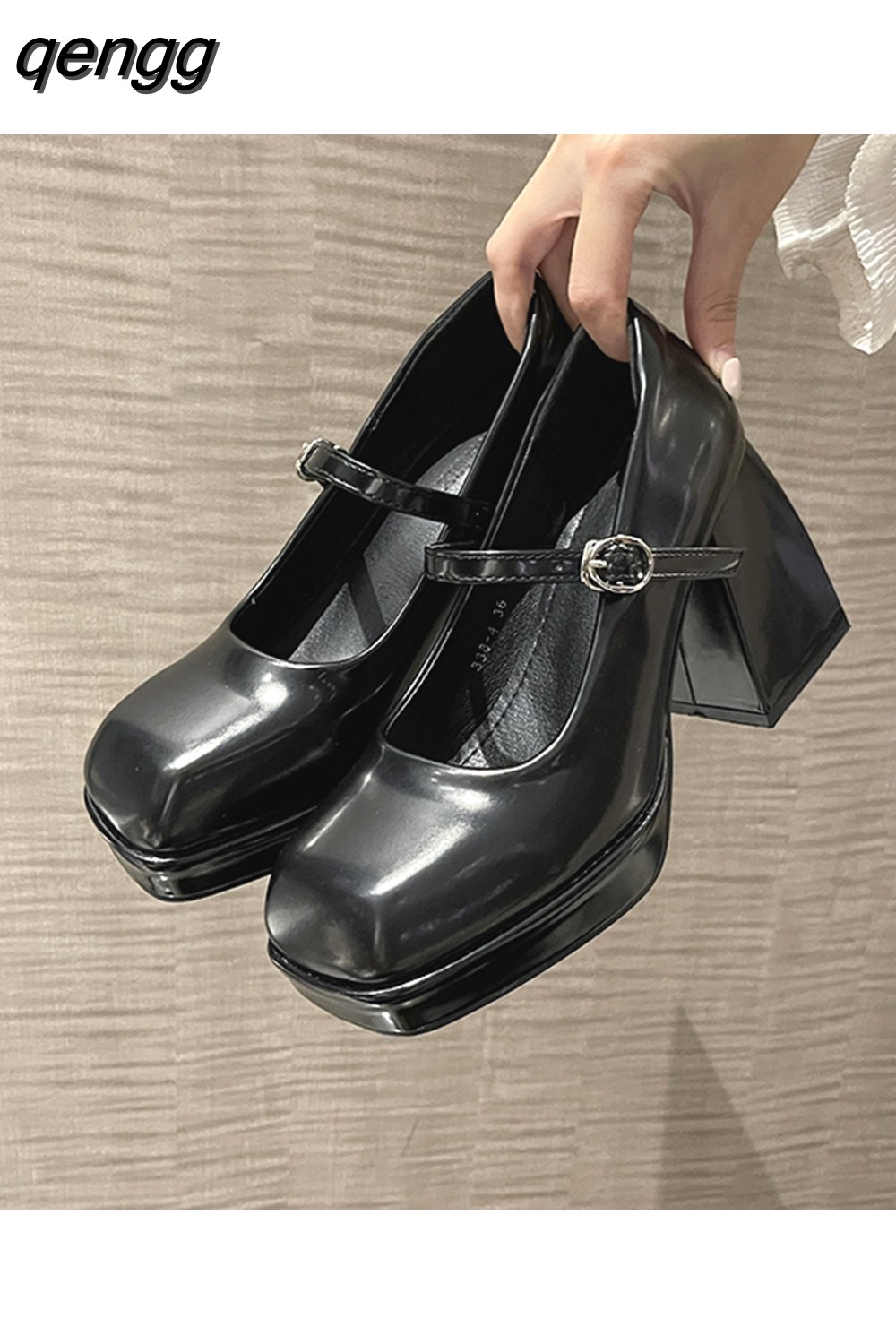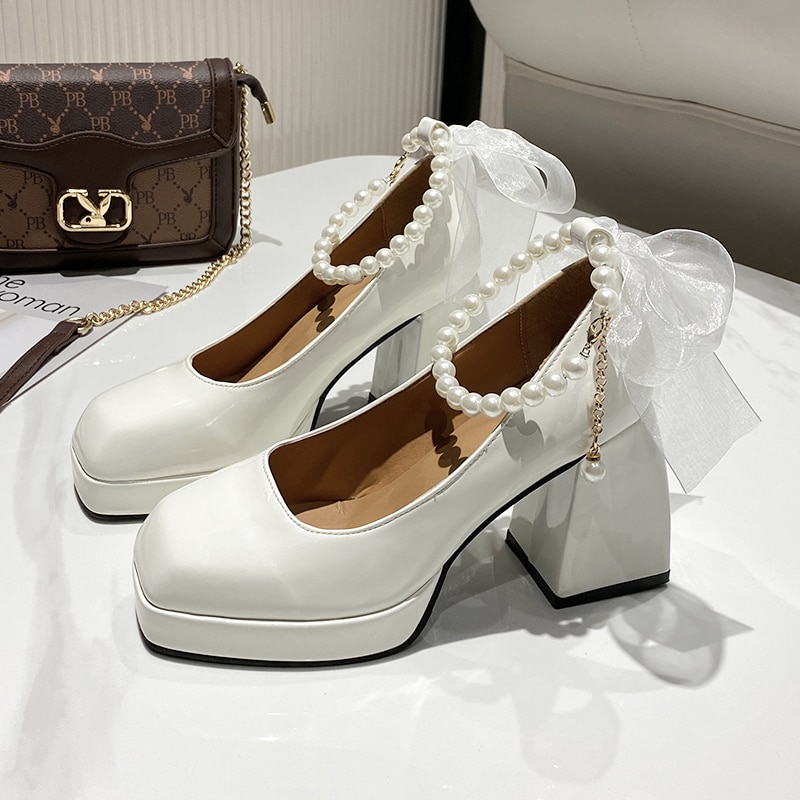 Niulatu Heels Elegant Bow Square Toe Black Fashion Women's Pumps Thick Heel Wedding Party Pearl Lace Wedding Shoes for Women DJSE