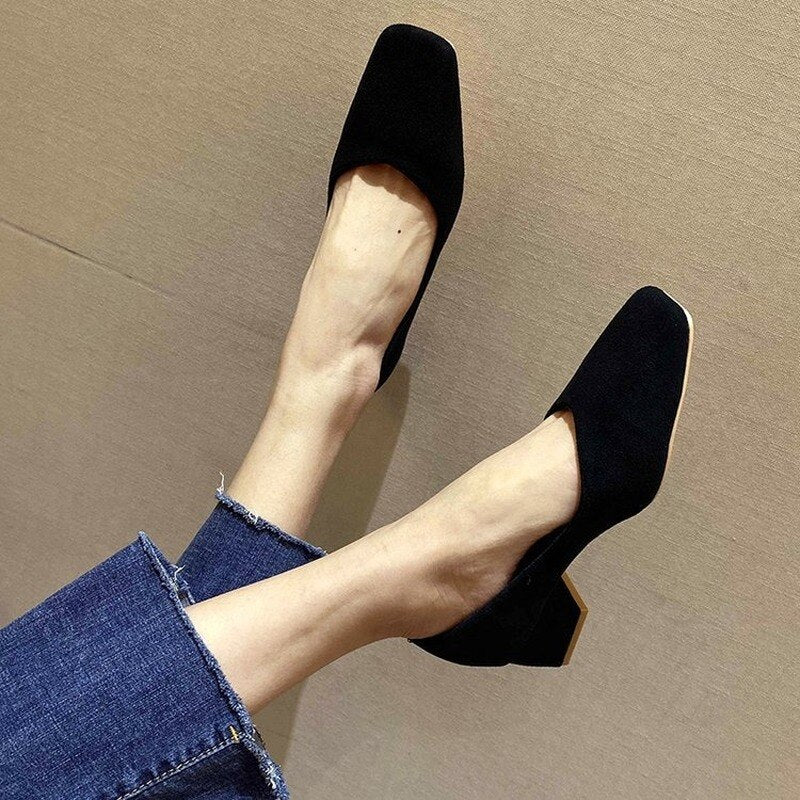 Niulatu Heels Shoes Woman 2025 Autumn Square Toe Black Heels Office Ladies Female Pumps women shoes DJSE