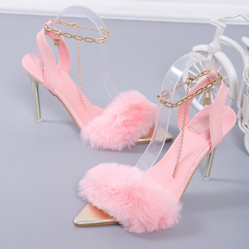 Niulatu High Heel Sandals Fluff Sexy Ladies High Heels Shoes Sandals Women Heels Women Open Toe Shoes Super High DJSE