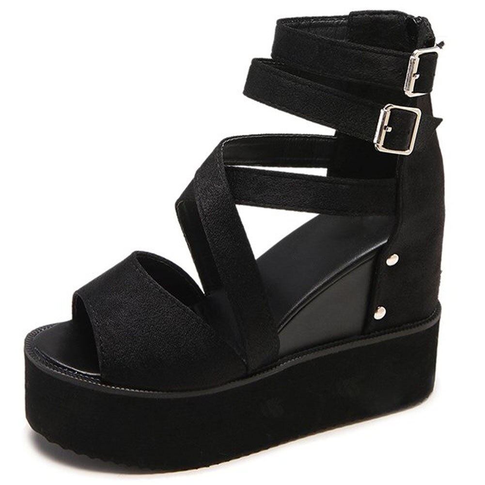 Niulatu Hot Women Open Toe Buckle Zipper Rivet Casual Shoes Solid Chunky Sandals Women Punk Summer Sandals DJSE