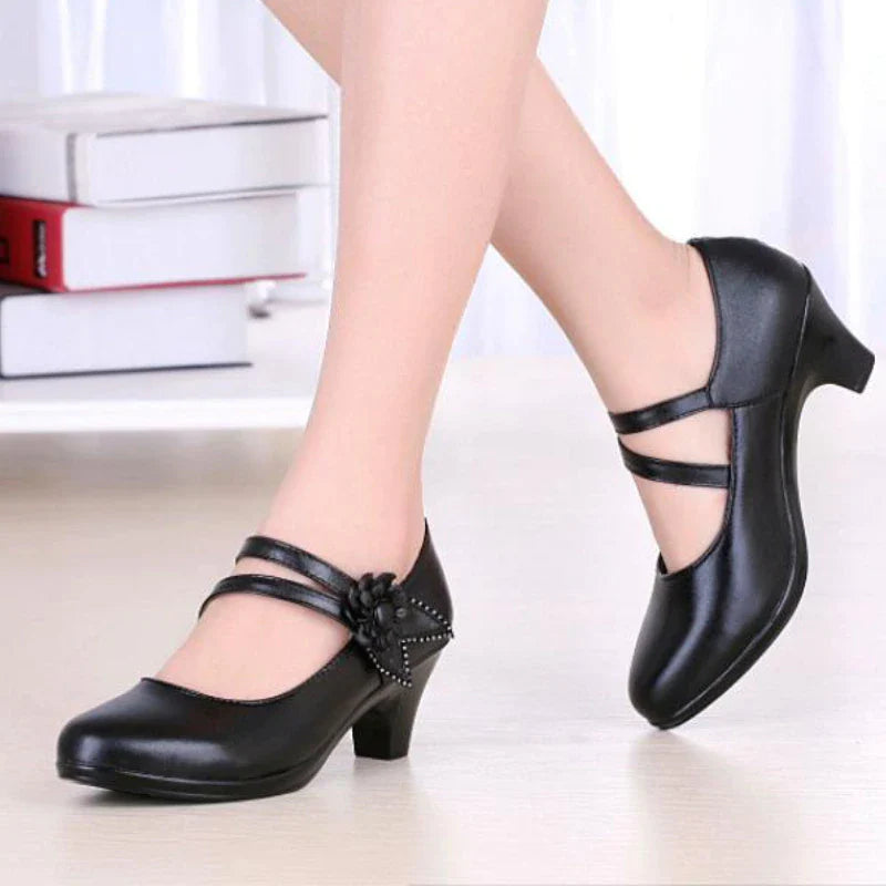 Niulatu Leather Black OL Work Shoes Women Low Heels Pumps 2025 Spring New Lady Casual Shoes Flower Pumps For Womens DJSE