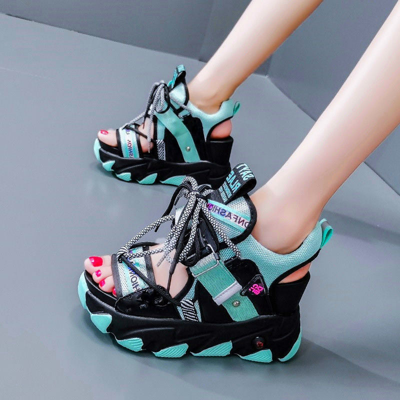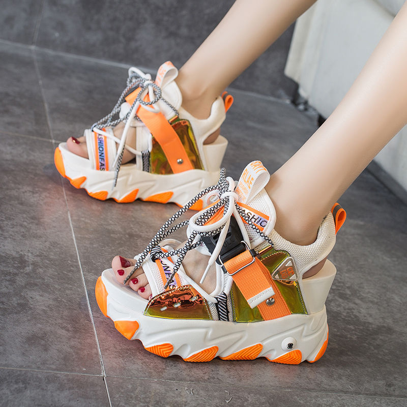 Niulatu Leisure Lady Platform Chunky Sandals Mixed Color Shoes Sports Wedge White Sandals Women High Heel Beach Casual Shoes 34 DJSE