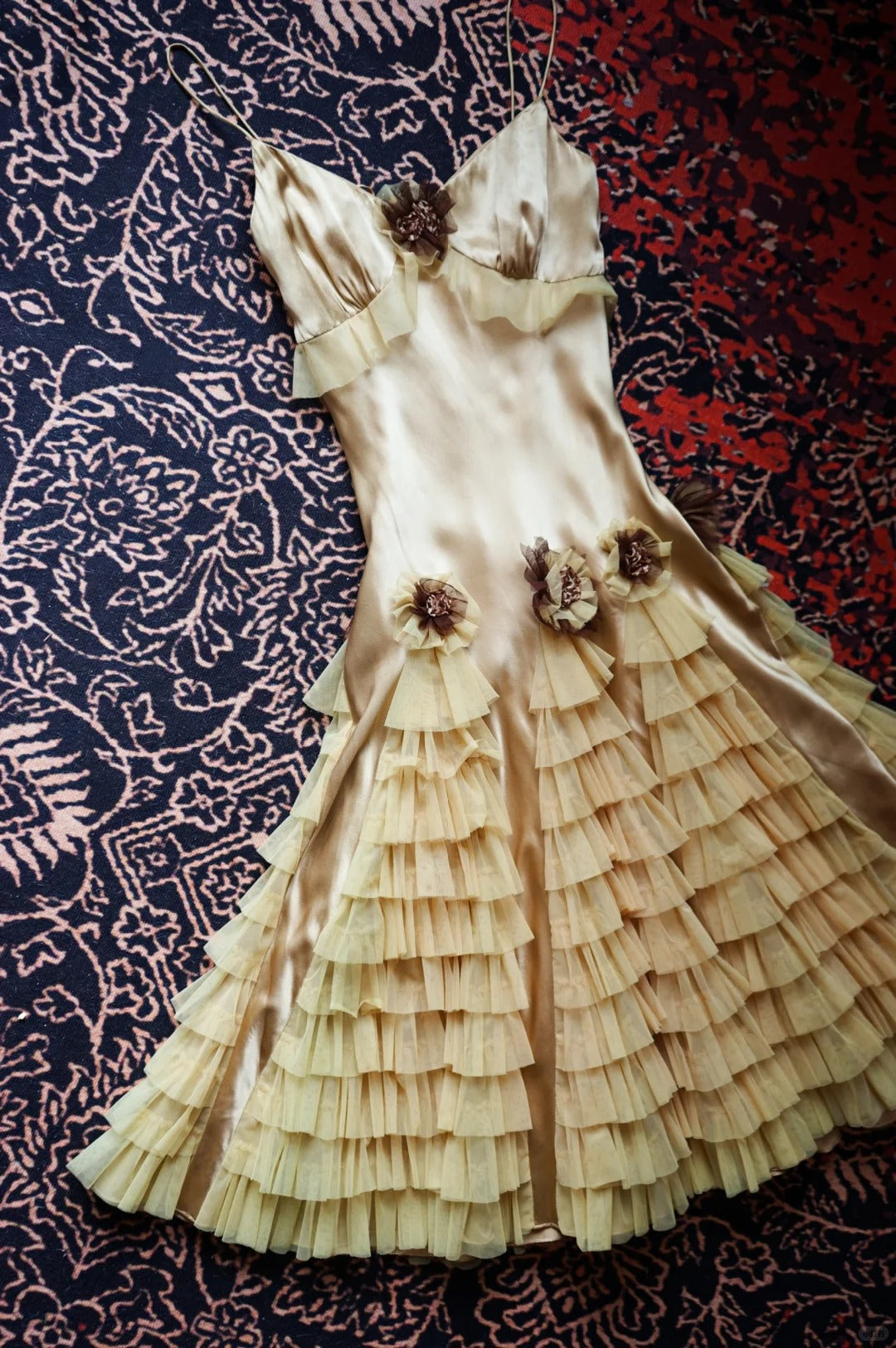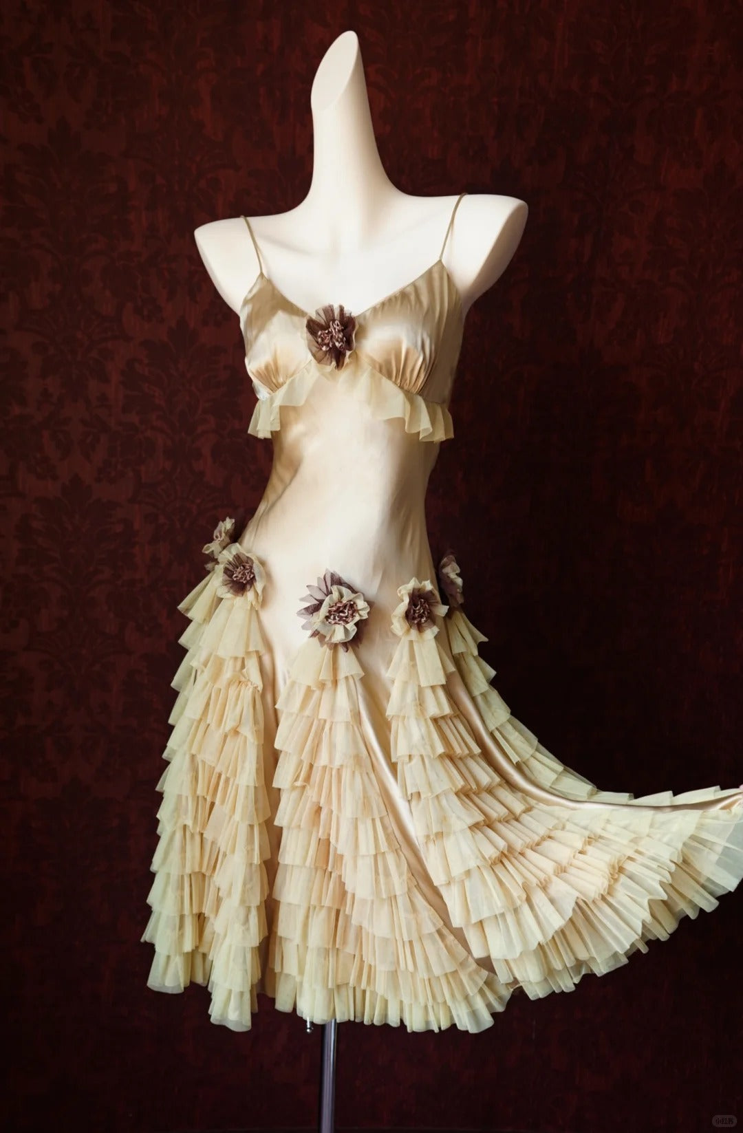 Niulatu Light Champagne Sheath Birthday Dress Vintage Satin Tiered Tulle Short Formal Dress with Appliques HZ1031