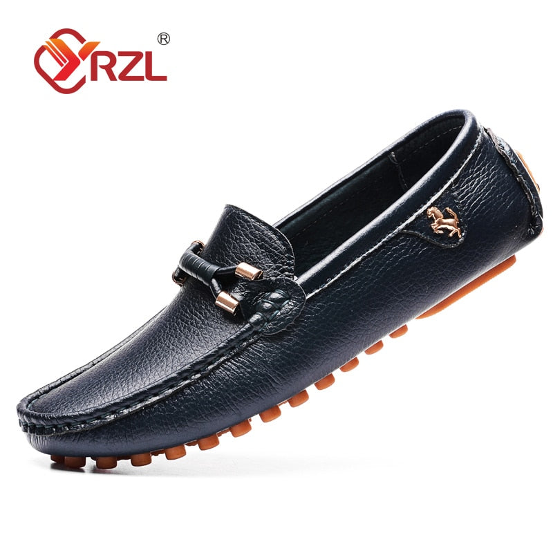 Niulatu Loafers Men Handmade Leather Shoes Casual Driving Flats Slip-on Shoes Moccasins Boat Shoes Black/White/Blue Plus Size DJSE