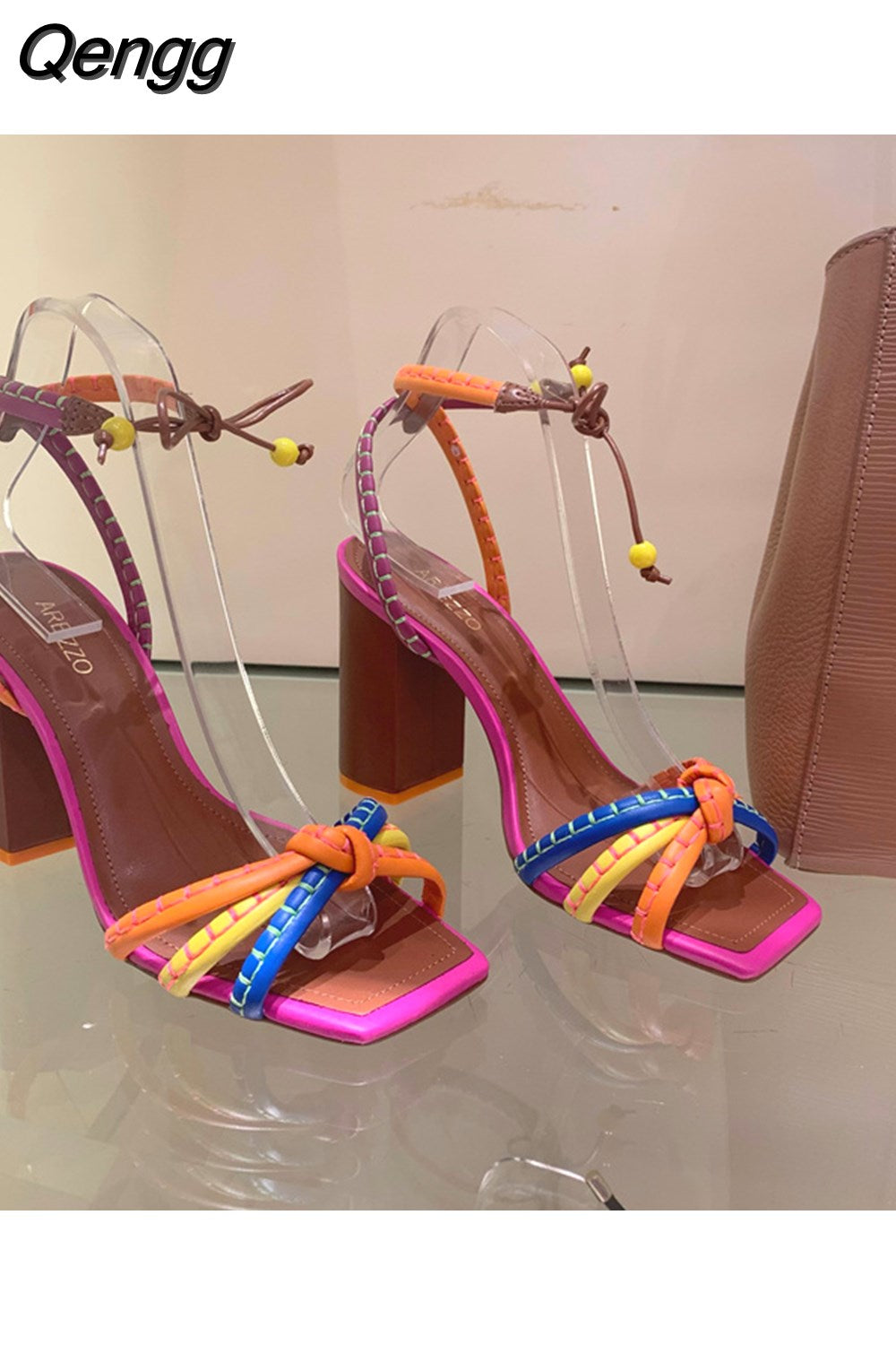 Niulatu Luxury Twist Woven Sandals Color Blocking Designer Brand Women's Shoes Thick with High Heel Sandals Female Casual DJSE