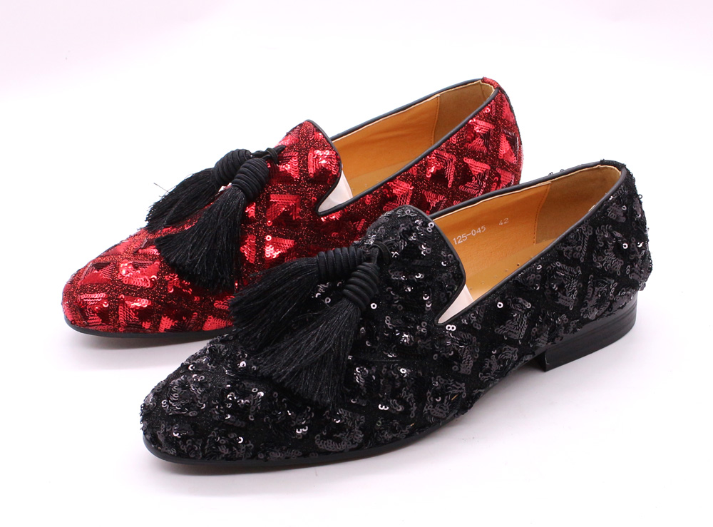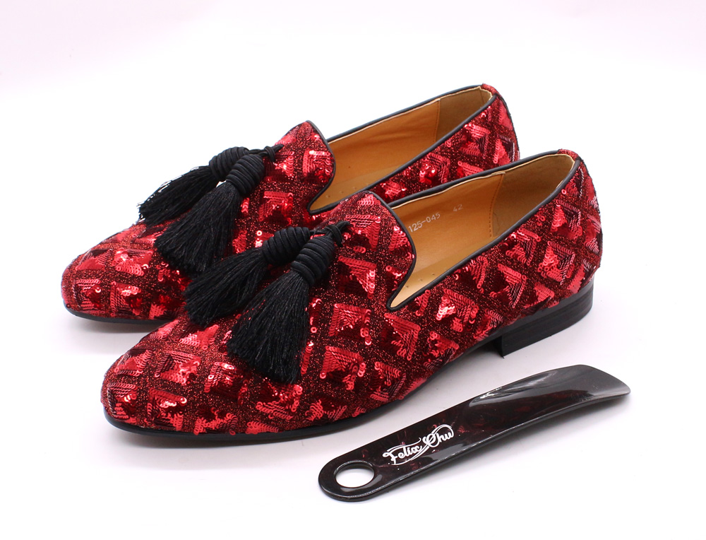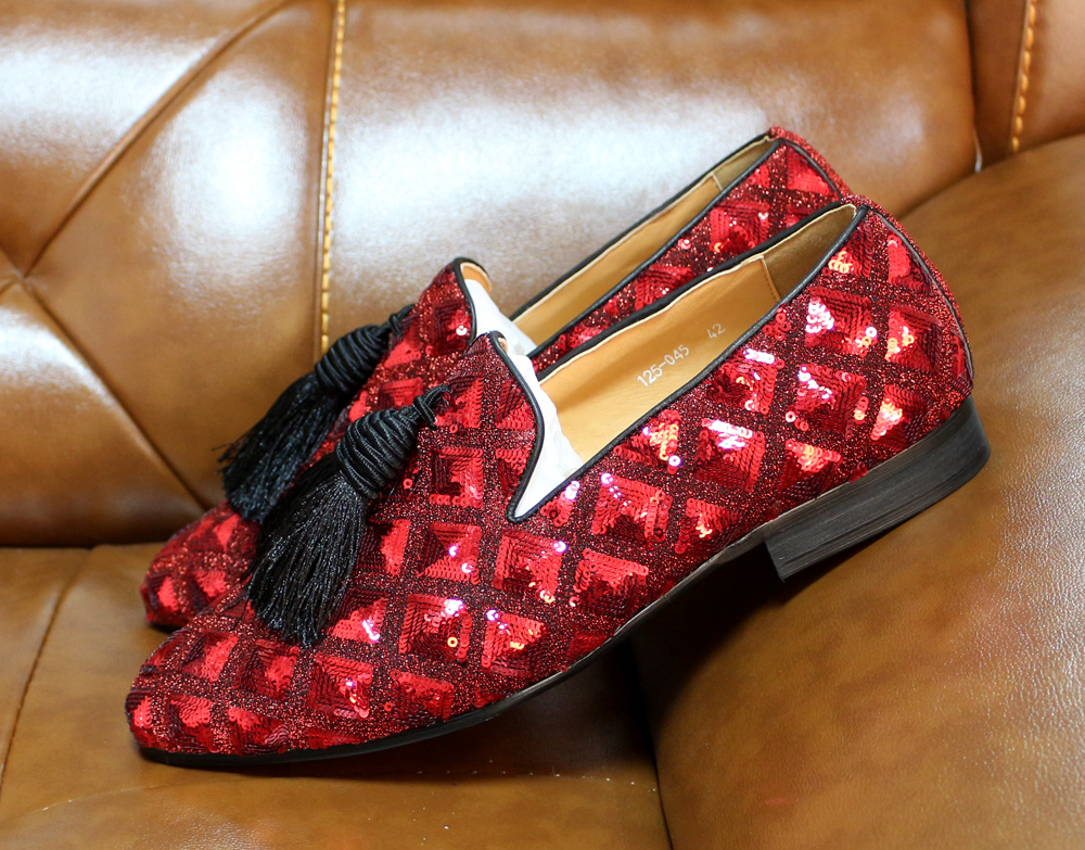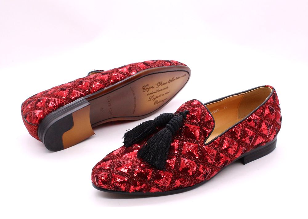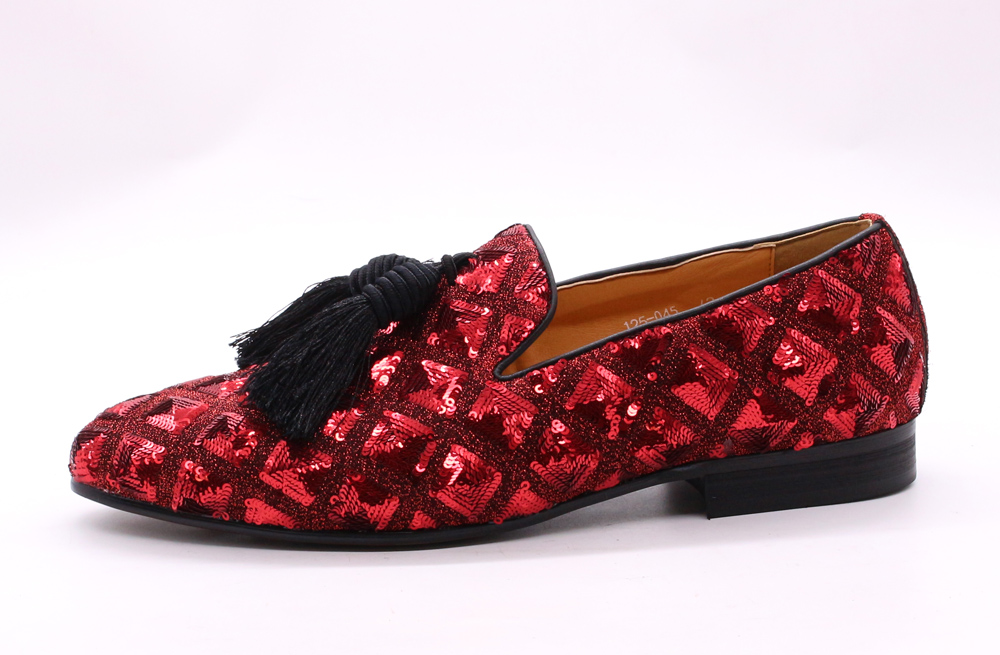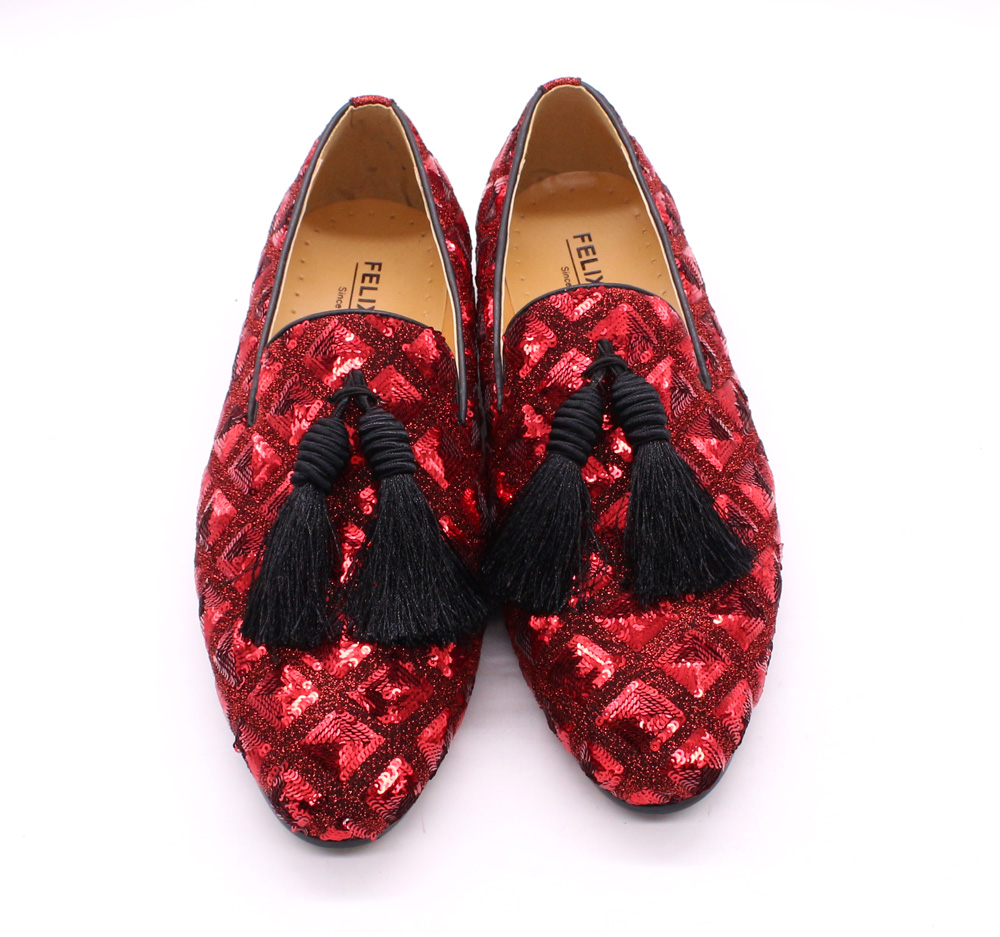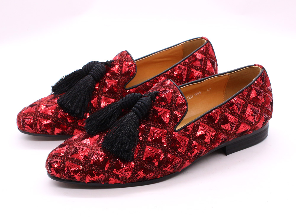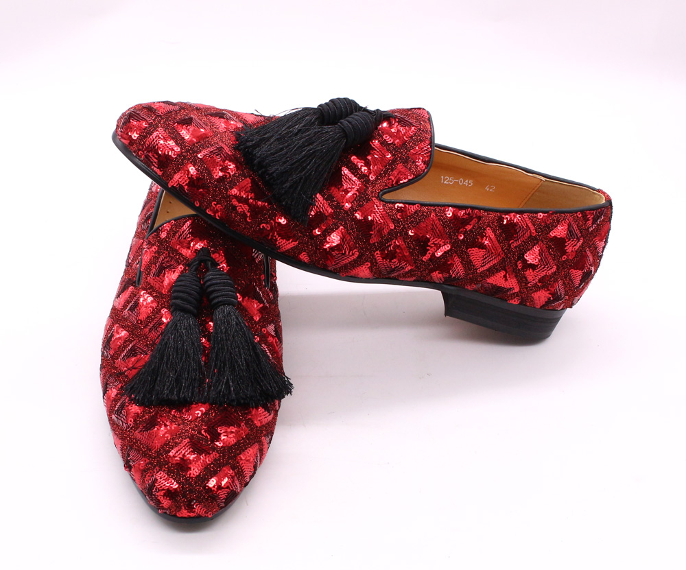 Niulatu Mens Tassel Loafers Sequin Casual Shoes British Style Gentleman Wedding Dress Shoes Red Breathable Men Party Dinner Formal Shoes DJSE