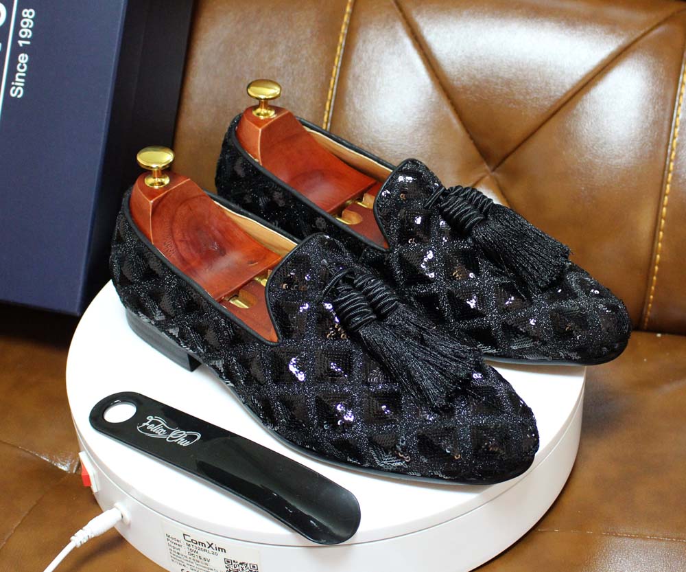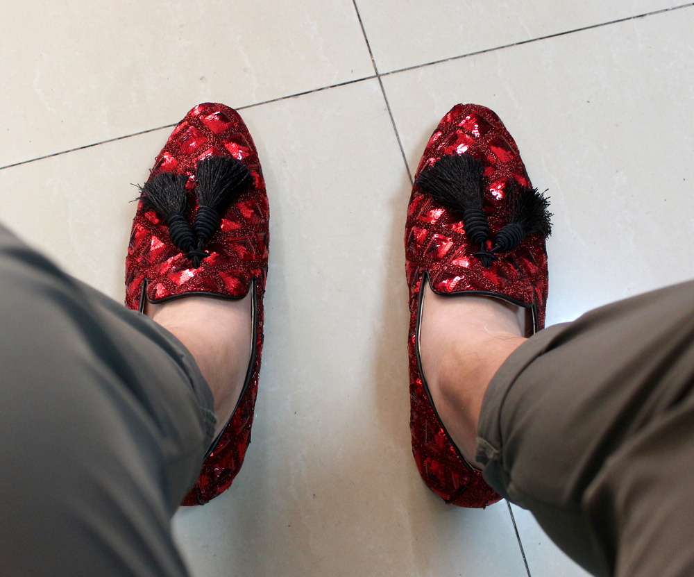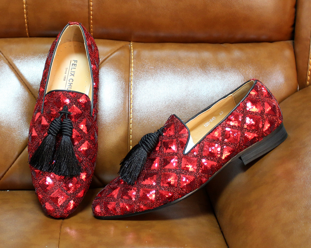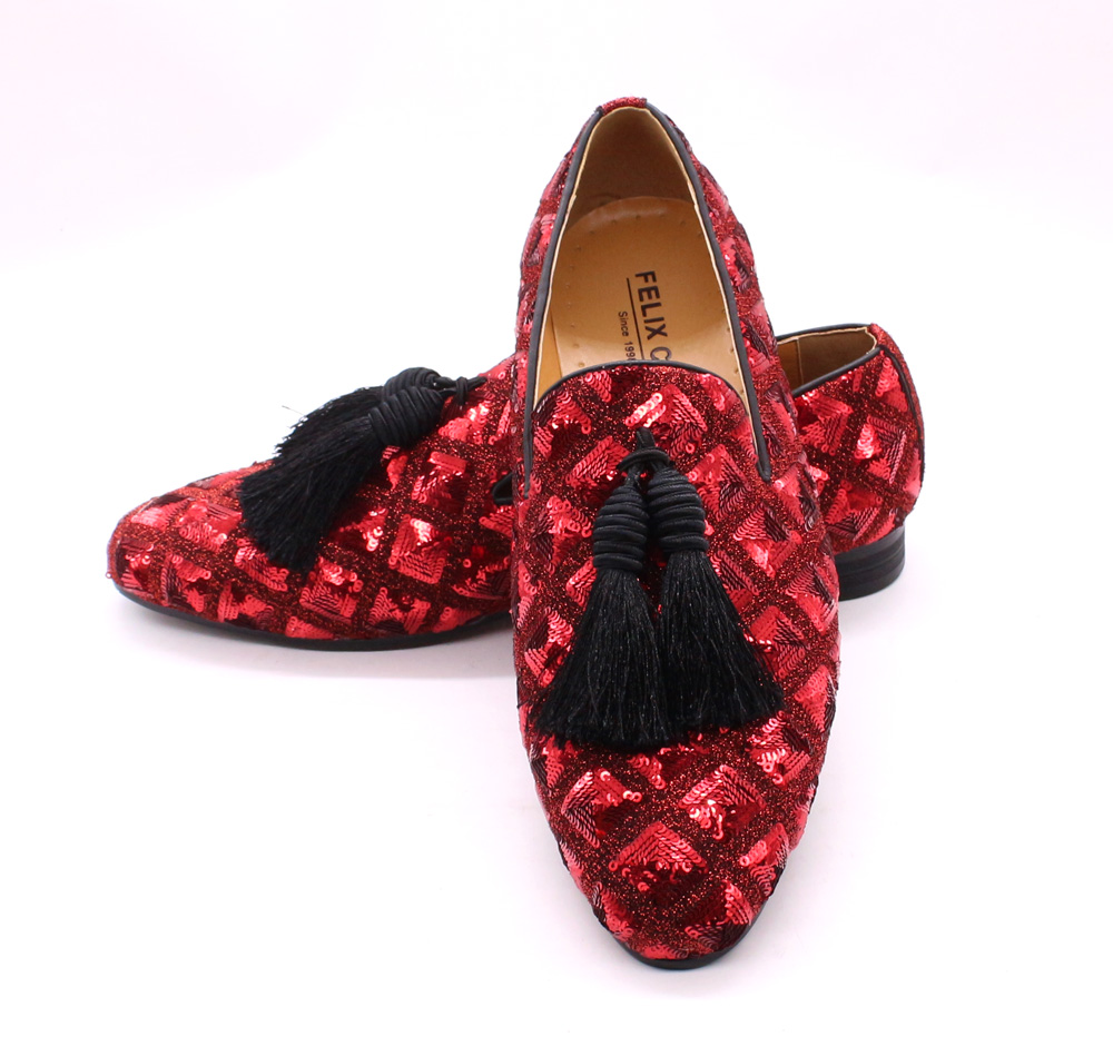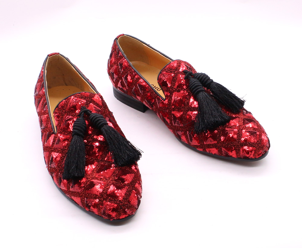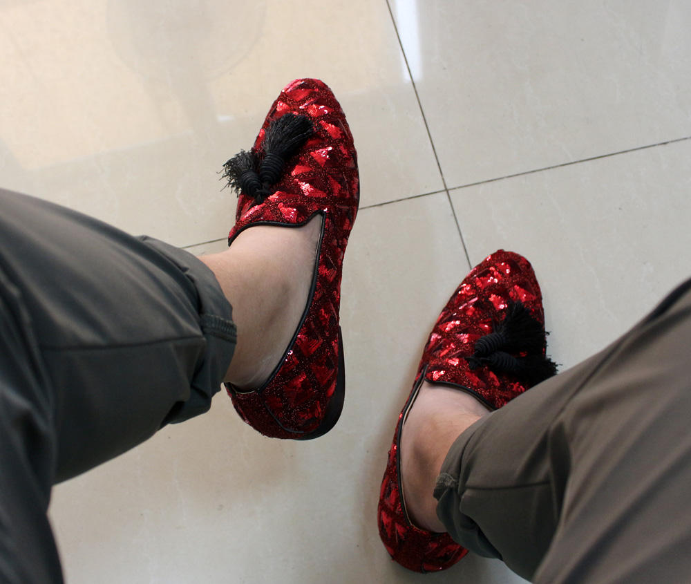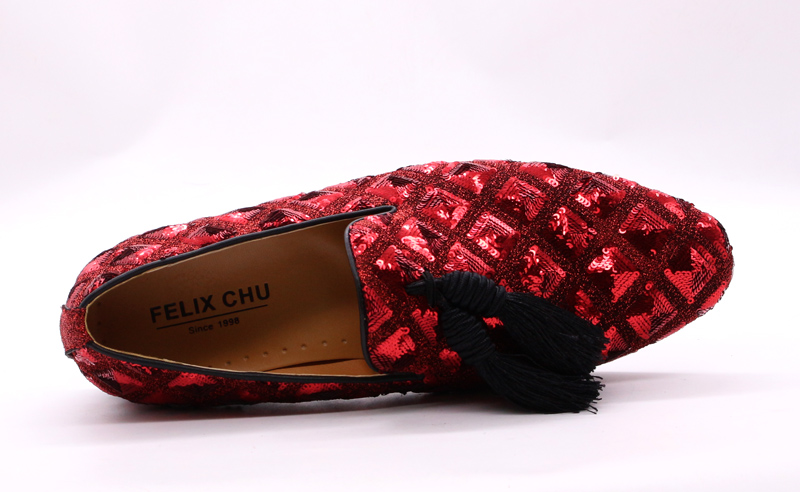 Niulatu Mens Tassel Loafers Sequin Casual Shoes British Style Gentleman Wedding Dress Shoes Red Breathable Men Party Dinner Formal Shoes DJSE