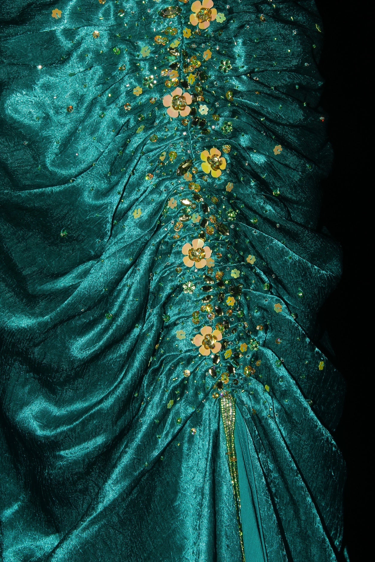 Niulatu Mermaid Halter Satin Beaded Long Prom Dress Retro V-neck Rhinestone Evening Gown HZ1103